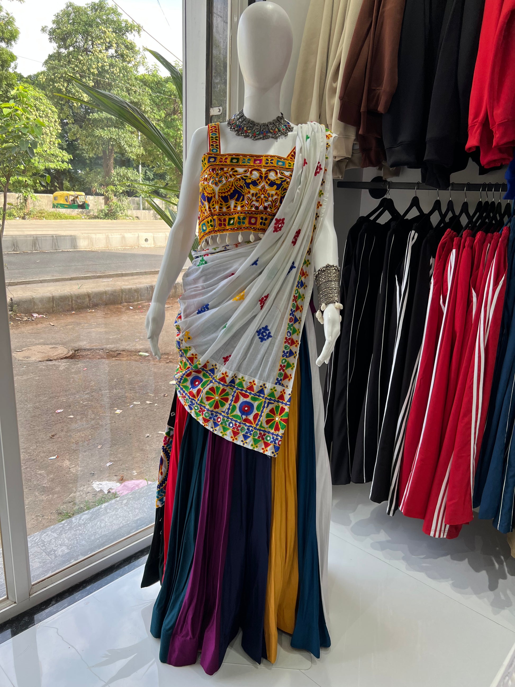 SXV multicoloured kutchi work cotton chaniya choli from gujarat for festive season (limited edition)