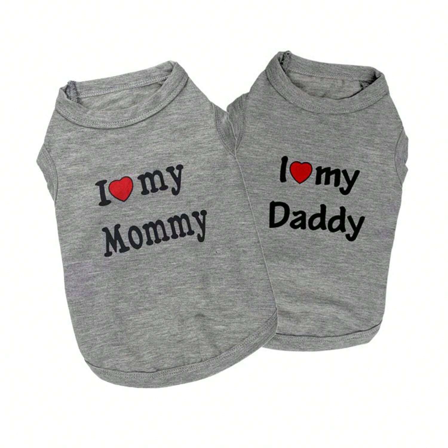 SXV 1 Pc Pet Dog Vest T-Shirt I Love My Daddy Mommy Vest Gift Costume Clothes For Small Puppy Cat Kitten Yorkshire Chihuahua Poodle Teacup Terrier Rabbit Baby Dogs