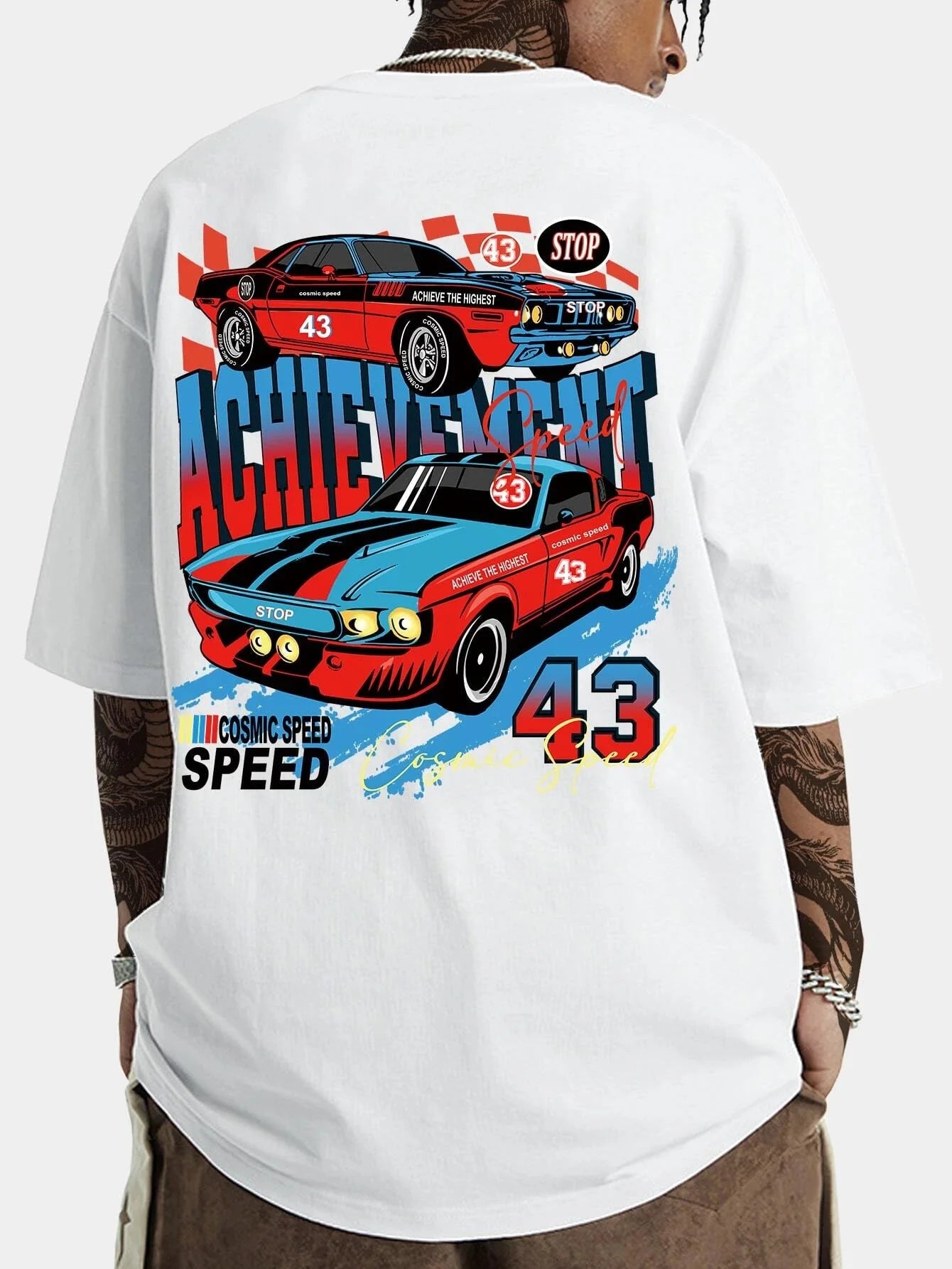 SXV 'Achievement Cosmic Speed’ Printed Cool Aesthetic Oversized Baggy T-shirt