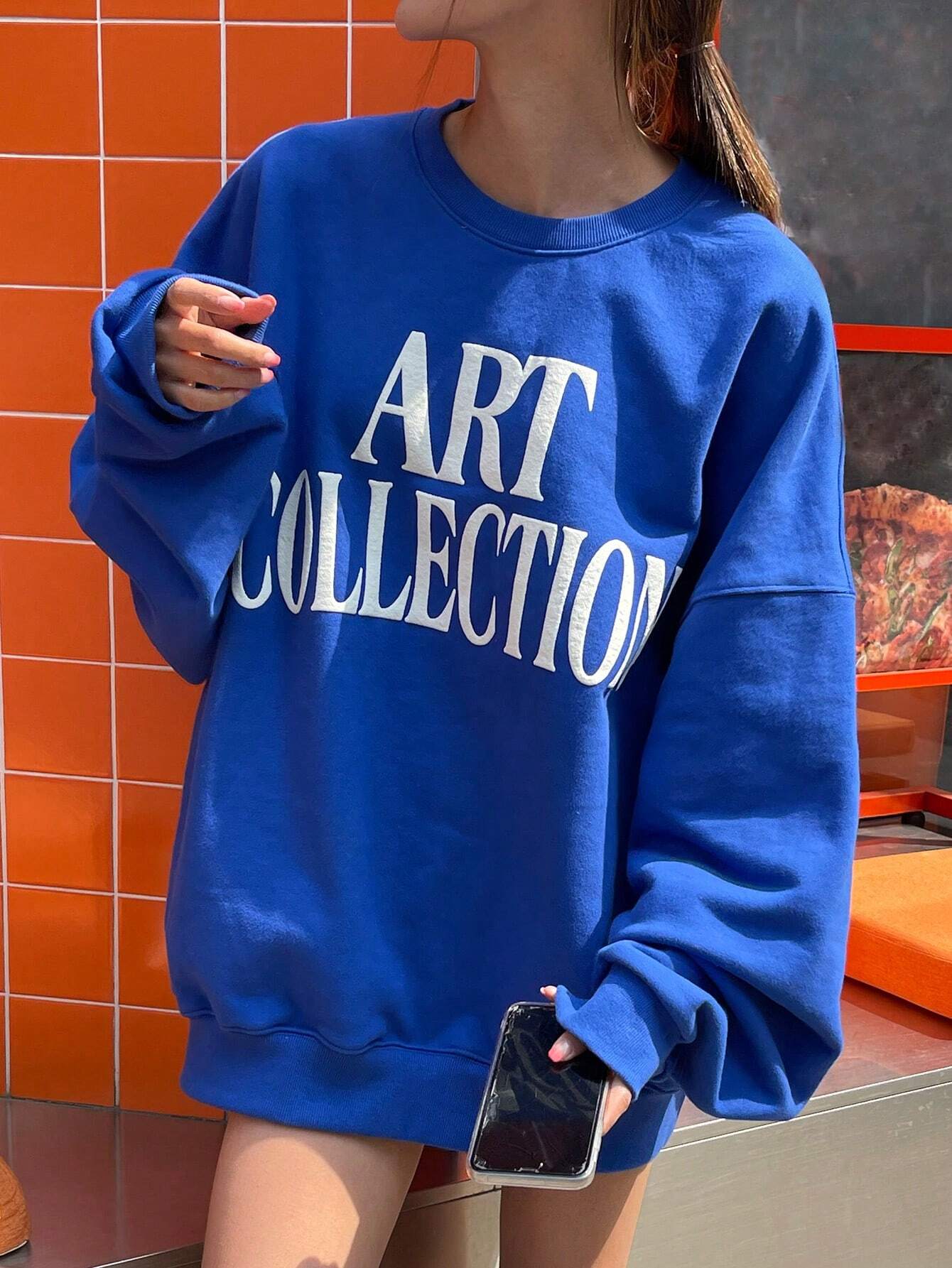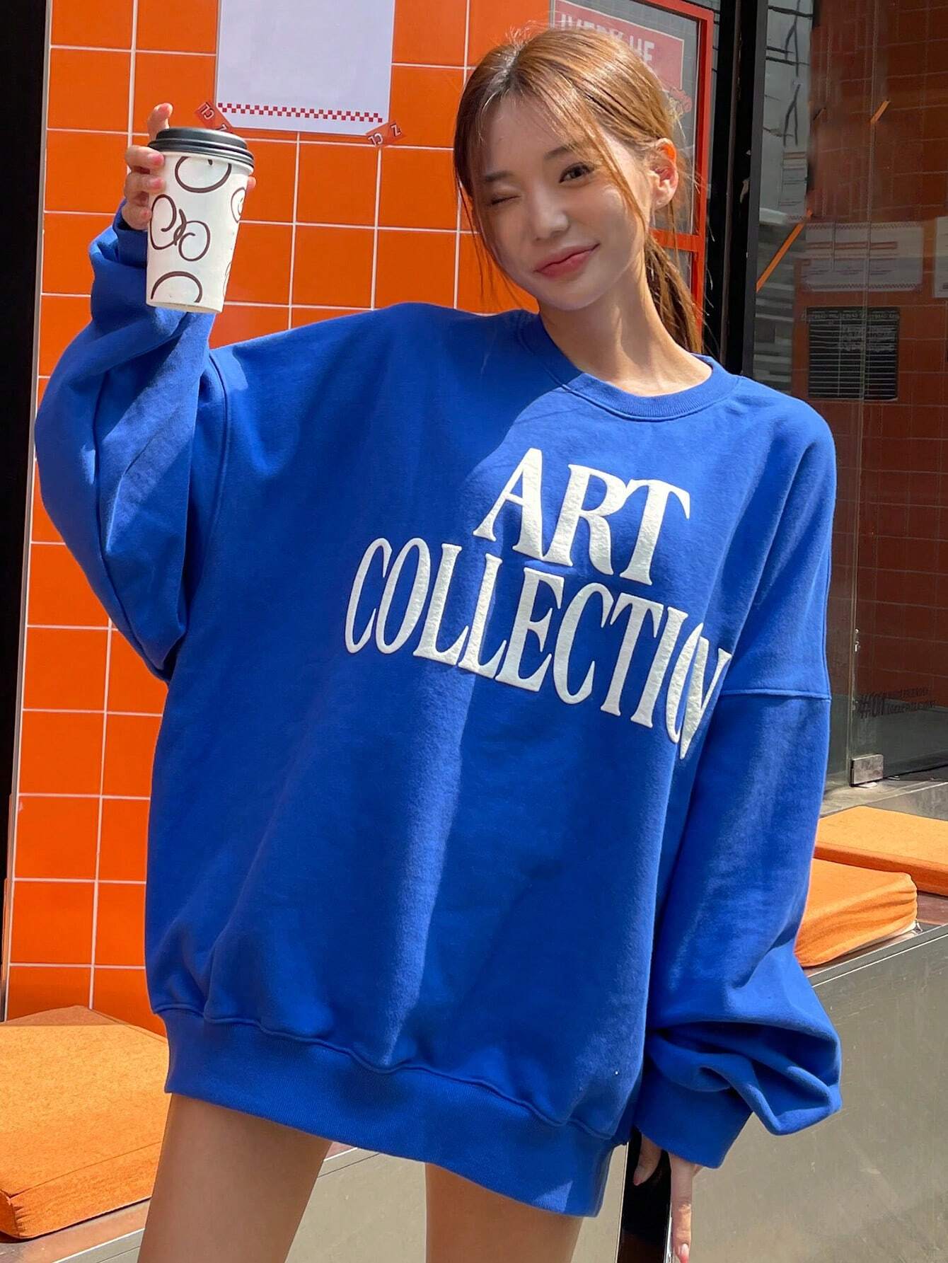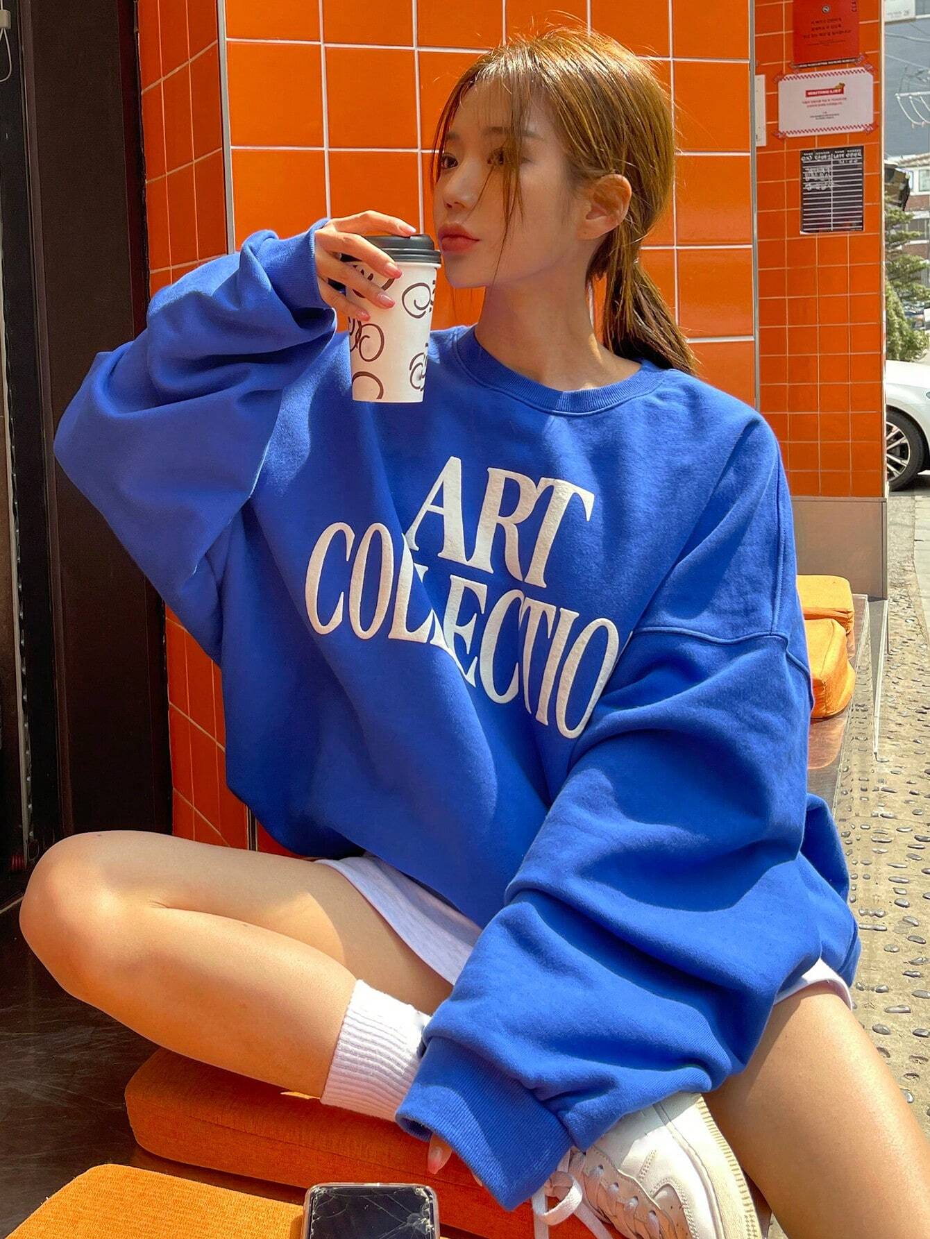 SXV ART COLLECTOR Letter Graphic Drop Shoulder Oversized Sweatshirt