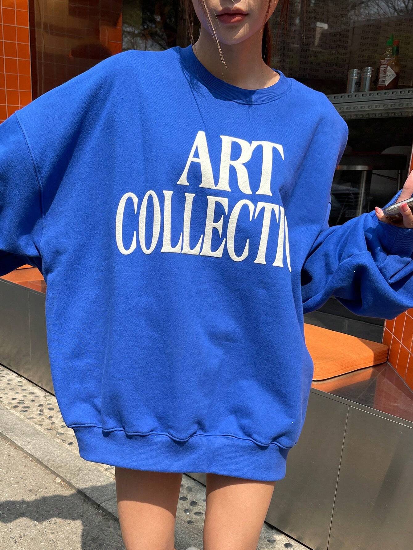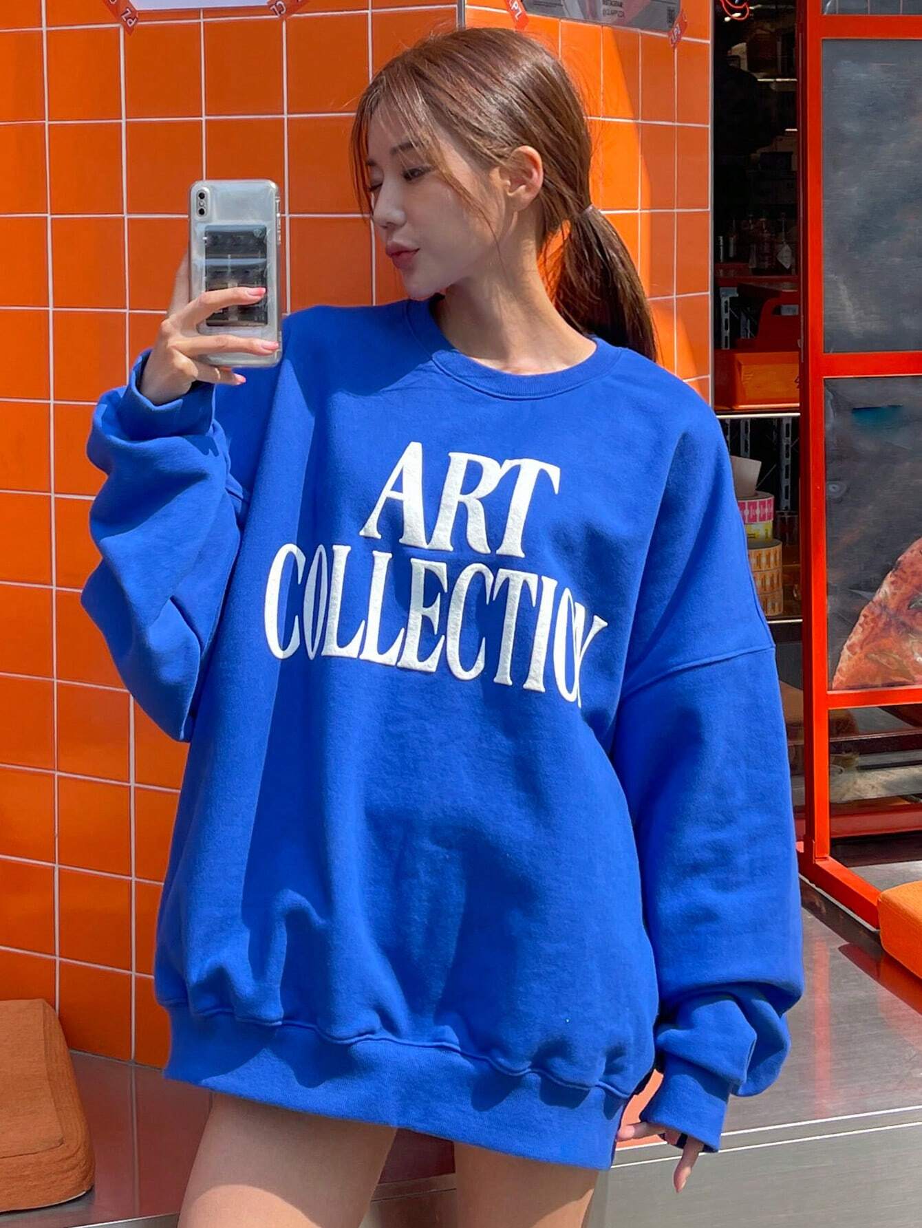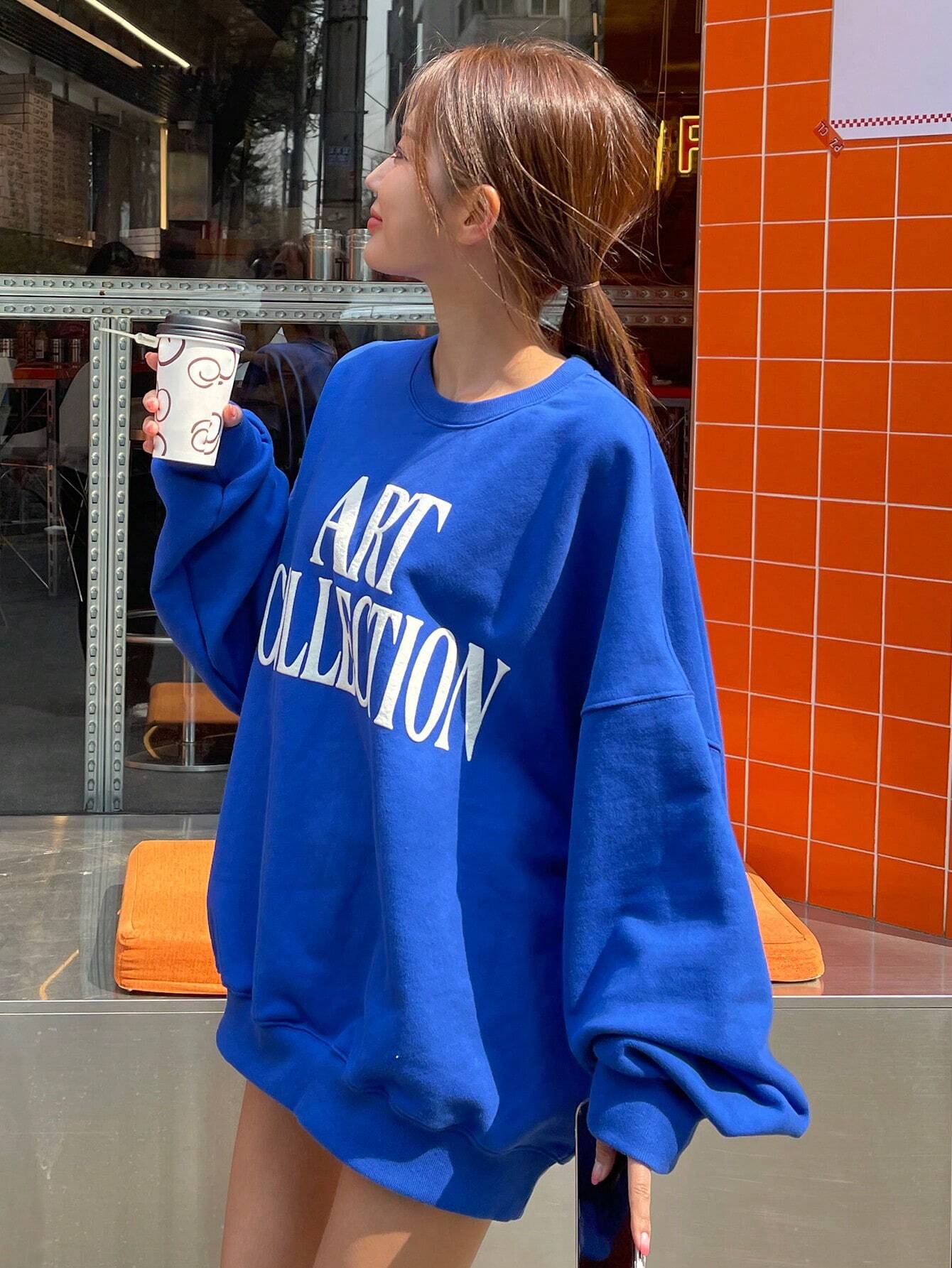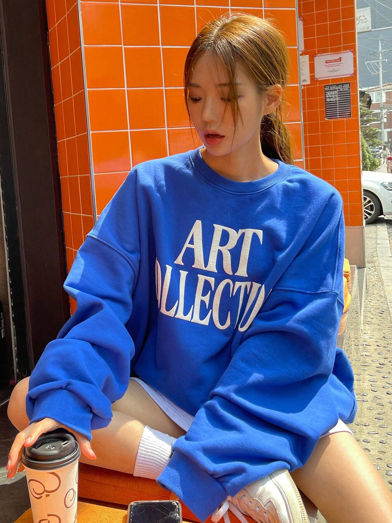 SXV ART COLLECTOR Letter Graphic Drop Shoulder Oversized Sweatshirt