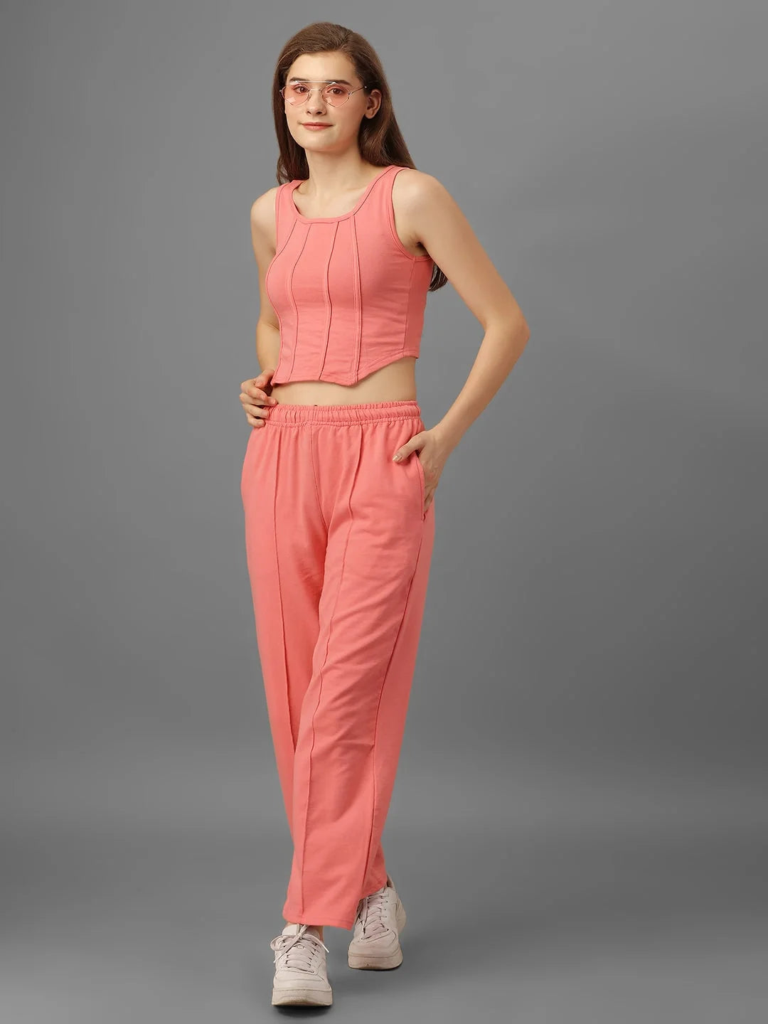 SXV Basic CO-ORDS set : Pink Corset Croptop And Trouser Combo