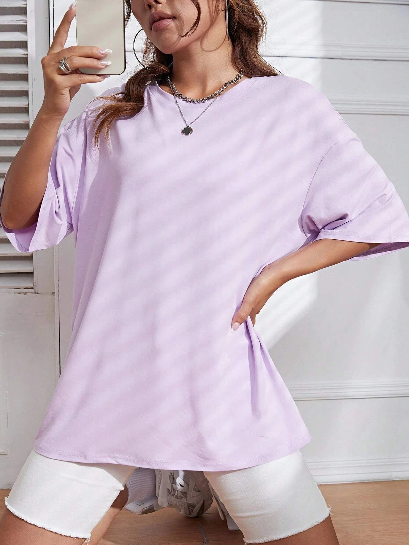 SXV 'BEIGE SOLID DROP SHOULDER OVERSIZED T-shirt