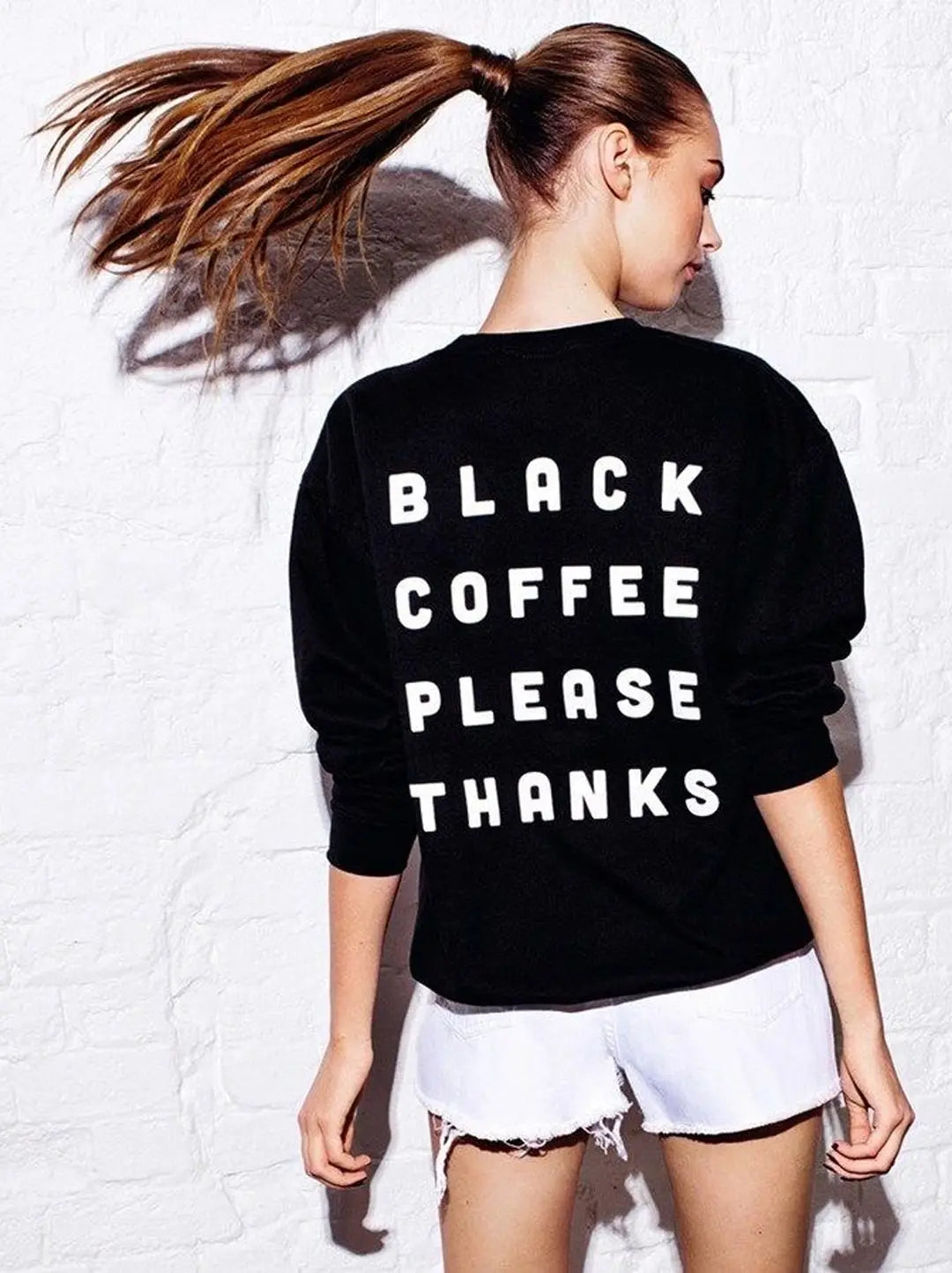 SXV 'Black coffee please thanks’ Printed Cool Aesthetic Drop Shoulder Oversized Baggy Sweatshirt
