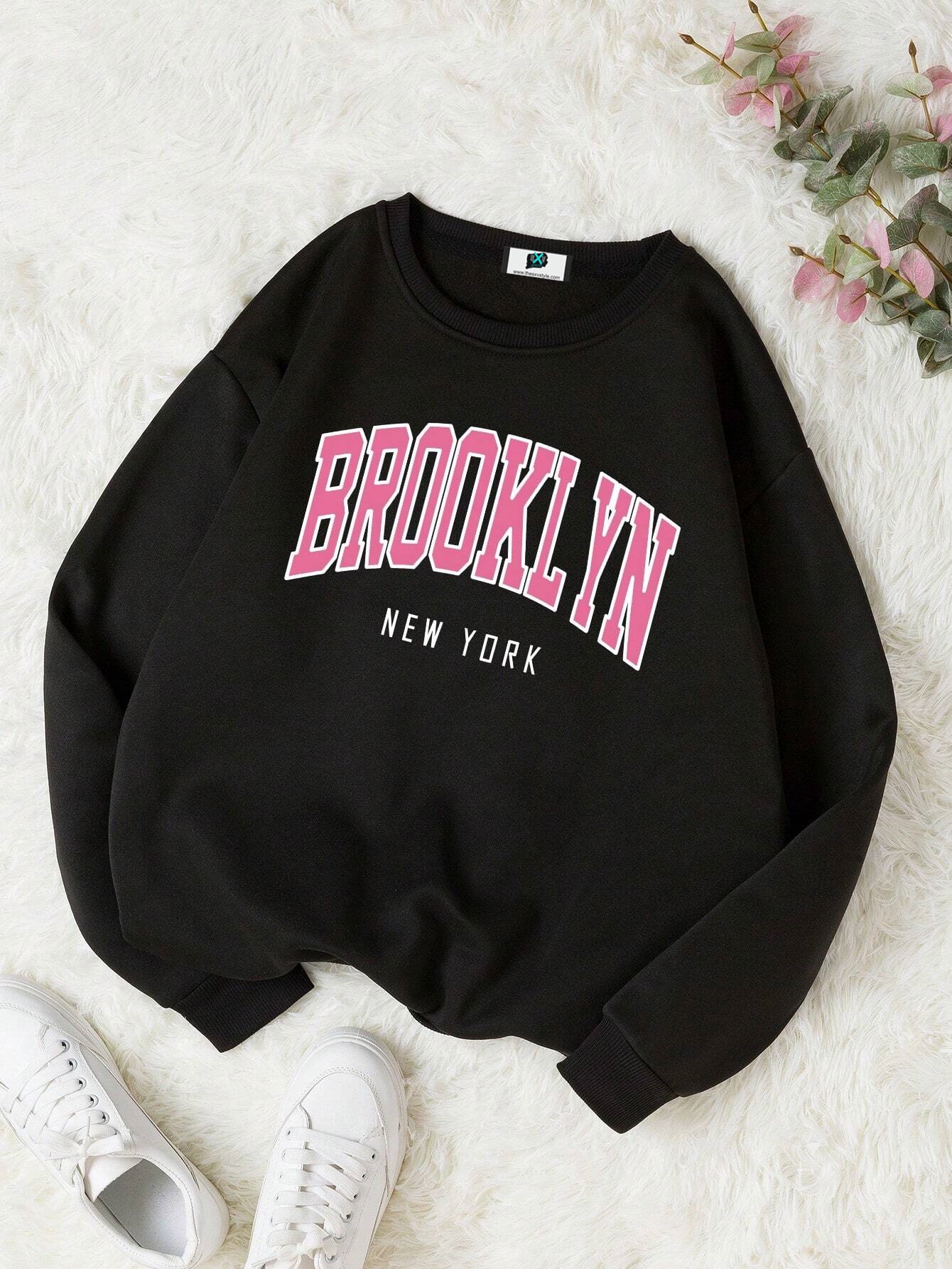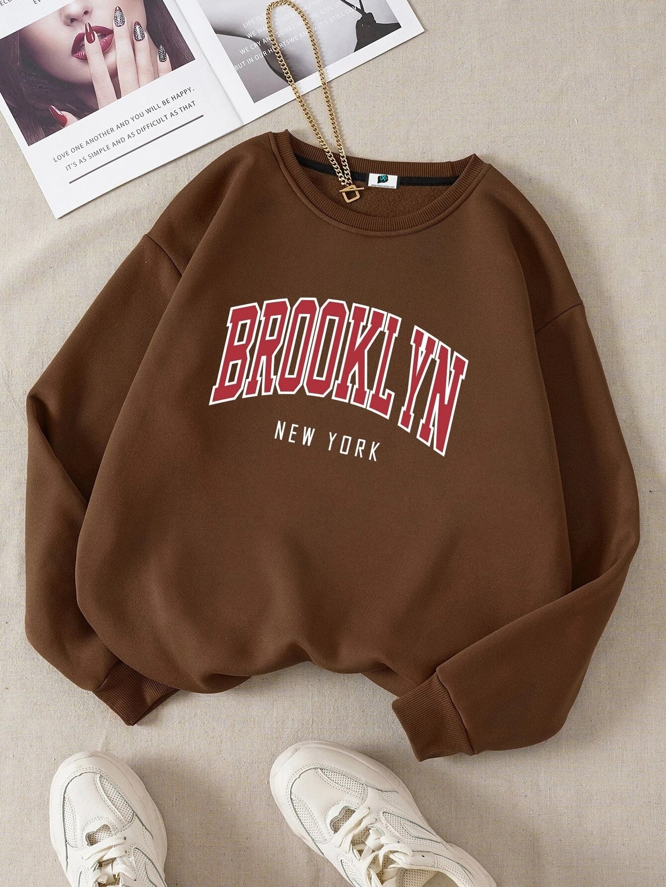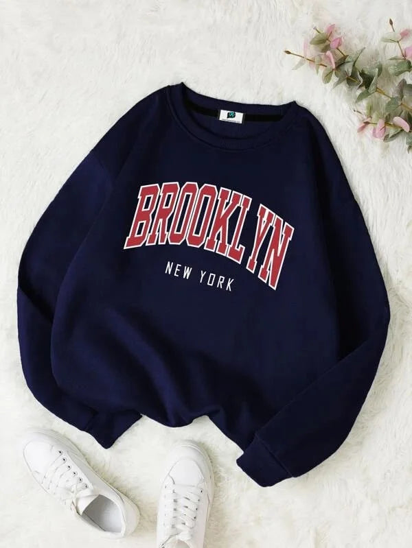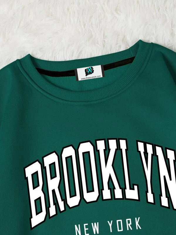 SXV 'Brooklyn Newyork’ Printed Cool Aesthetic Drop Shoulder Oversized Sweatshirt