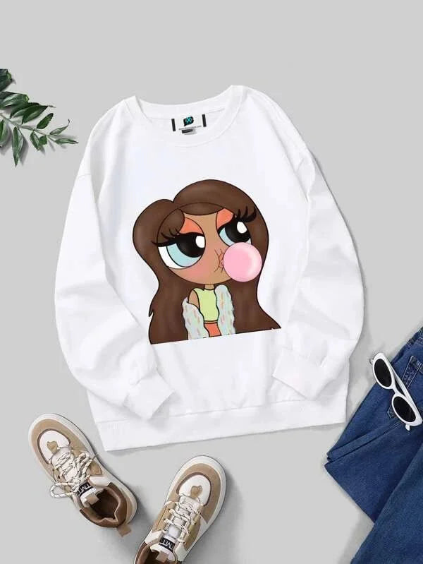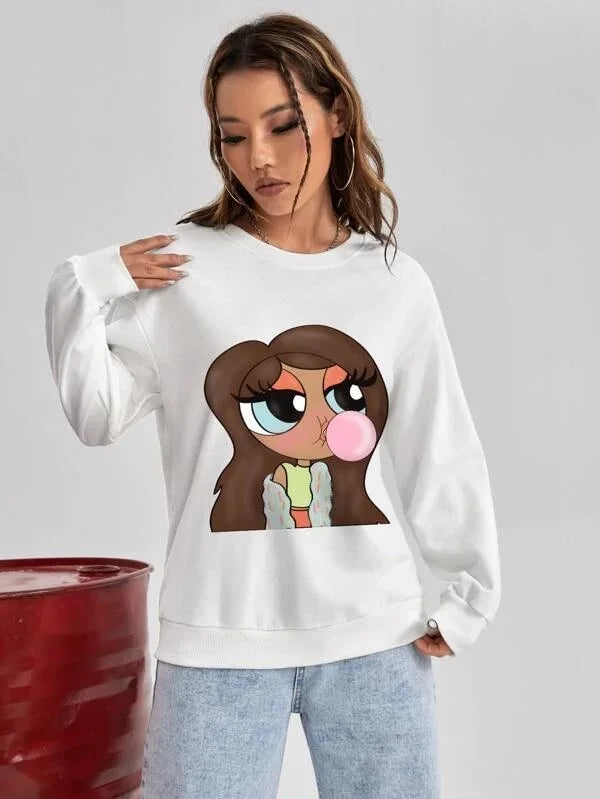 SXV 'Bubblegum Girl’ Printed Cool Aesthetic Drop Shoulder Oversized Sweatshirt