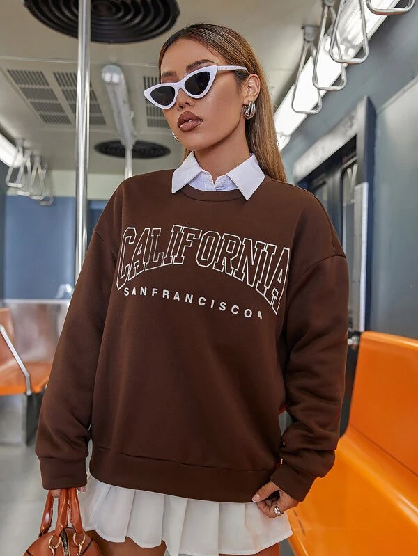 SXV 'California Sanfrancisco’ Printed Cool Aesthetic Drop Shoulder Oversized Sweatshirt