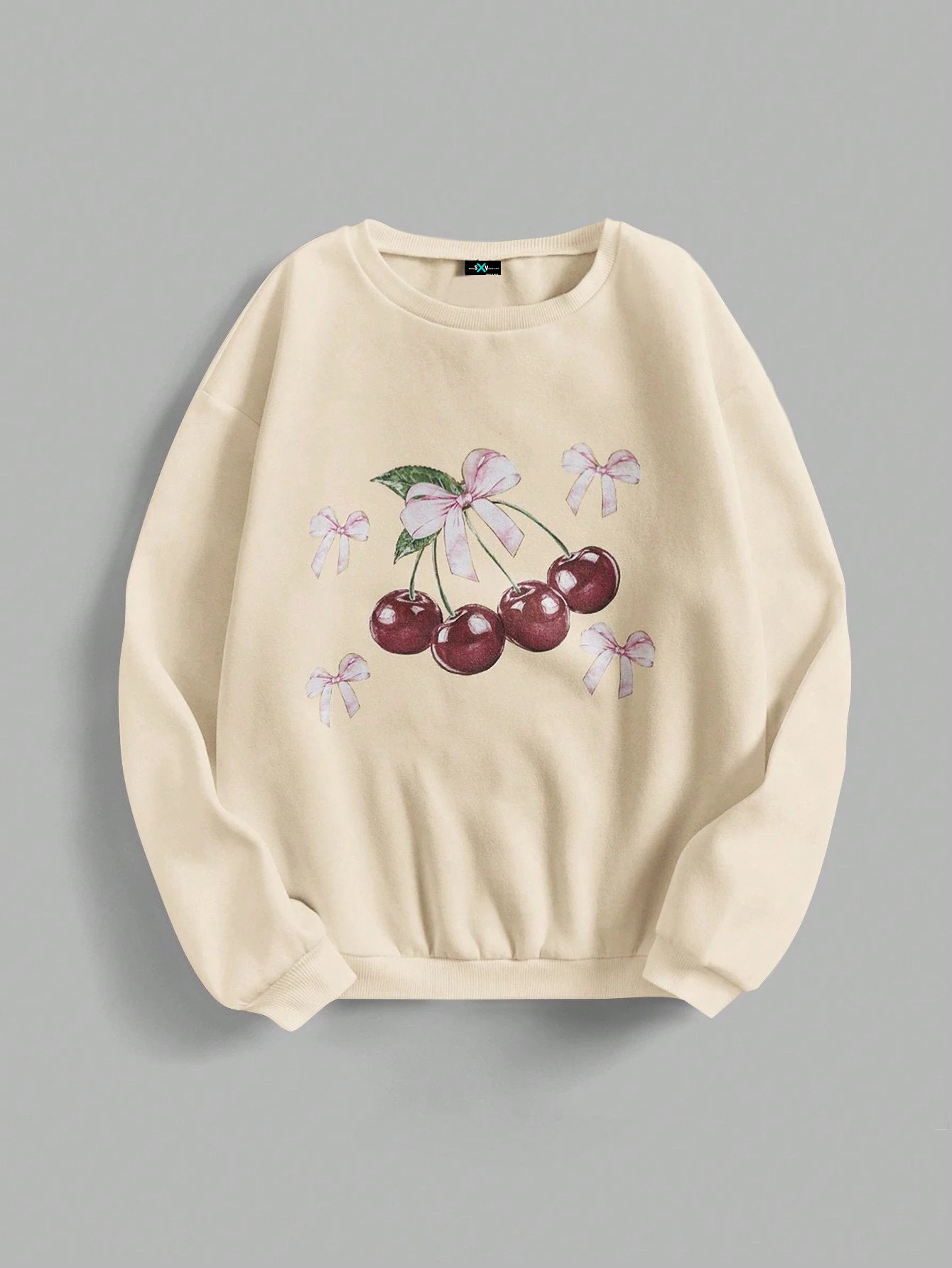 SXV 'CHERRIES AND BOW’ Printed Cool Aesthetic Drop Shoulder Oversized Baggy Sweatshirt