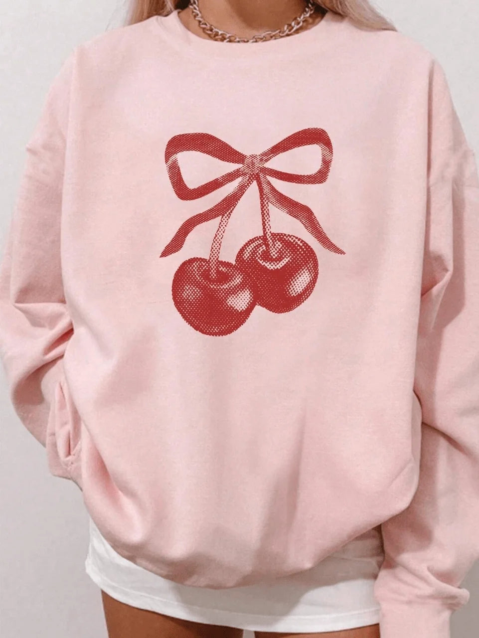 SXV 'cherry on bow knot’ Printed Cool Aesthetic Drop Shoulder Oversized Baggy Sweatshirt
