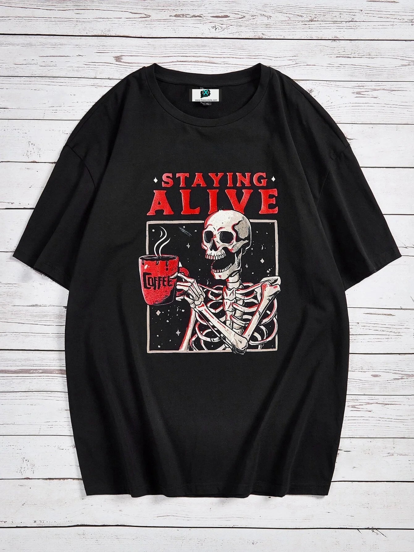 SXV 'coffee staying alive’ Printed Cool Aesthetic Oversized T-shirt