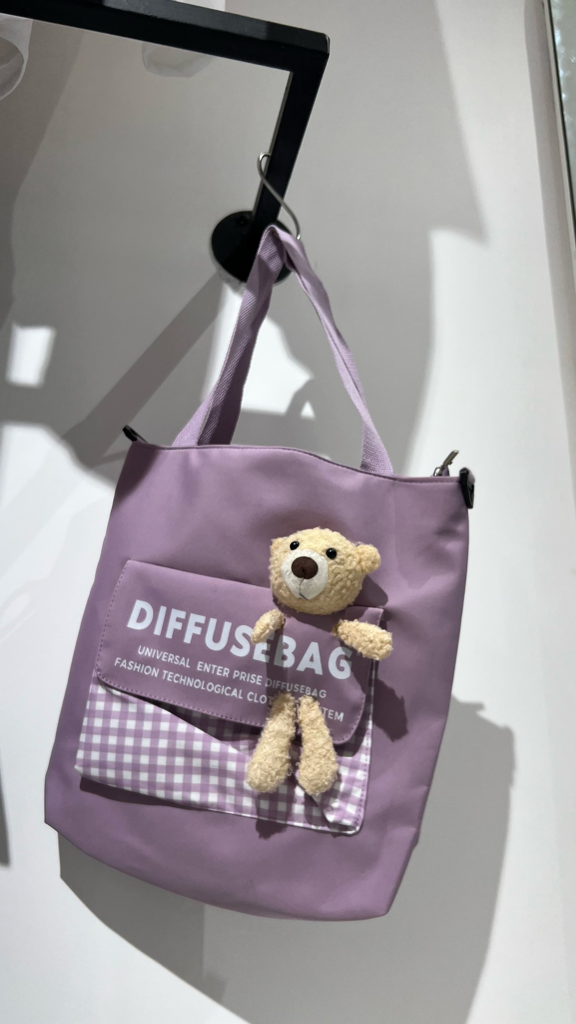 SXV "Diffusebag" canvas korean kawaii tote bag with attached teddy.