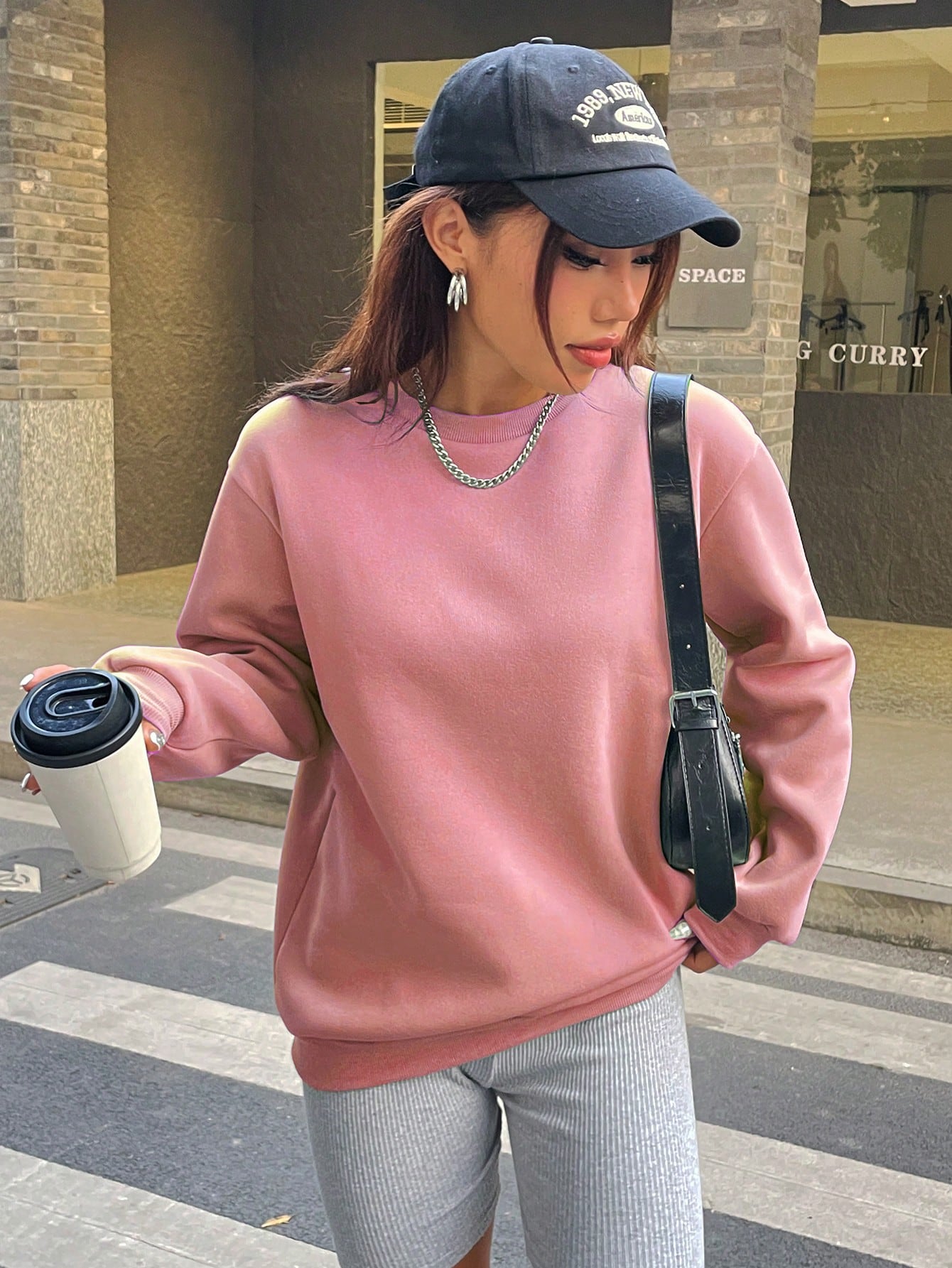 SXV DUSTY PINK PLAIN Cool Aesthetic Drop Shoulder Oversized Baggy Sweatshirt