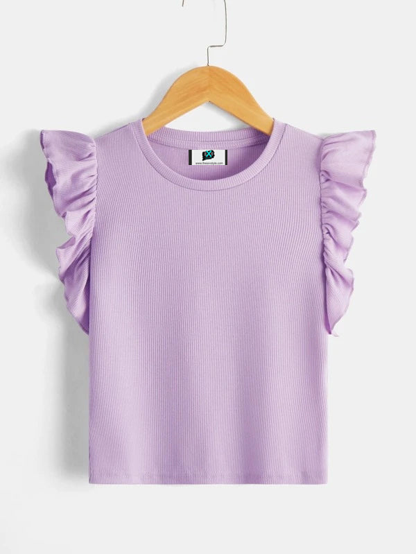 SXV Girls Ruffle Trim Sleeve Rib-knit Tee