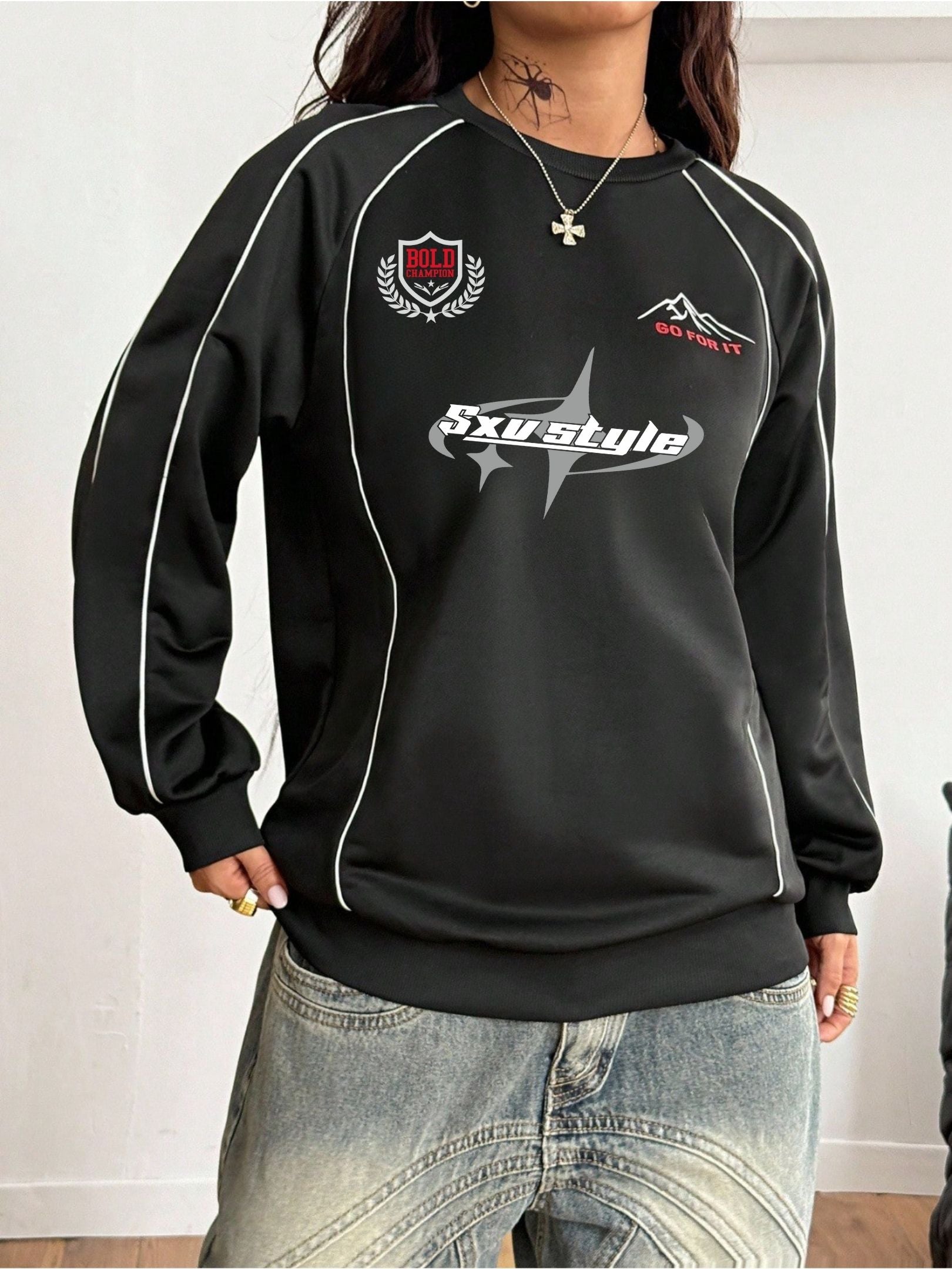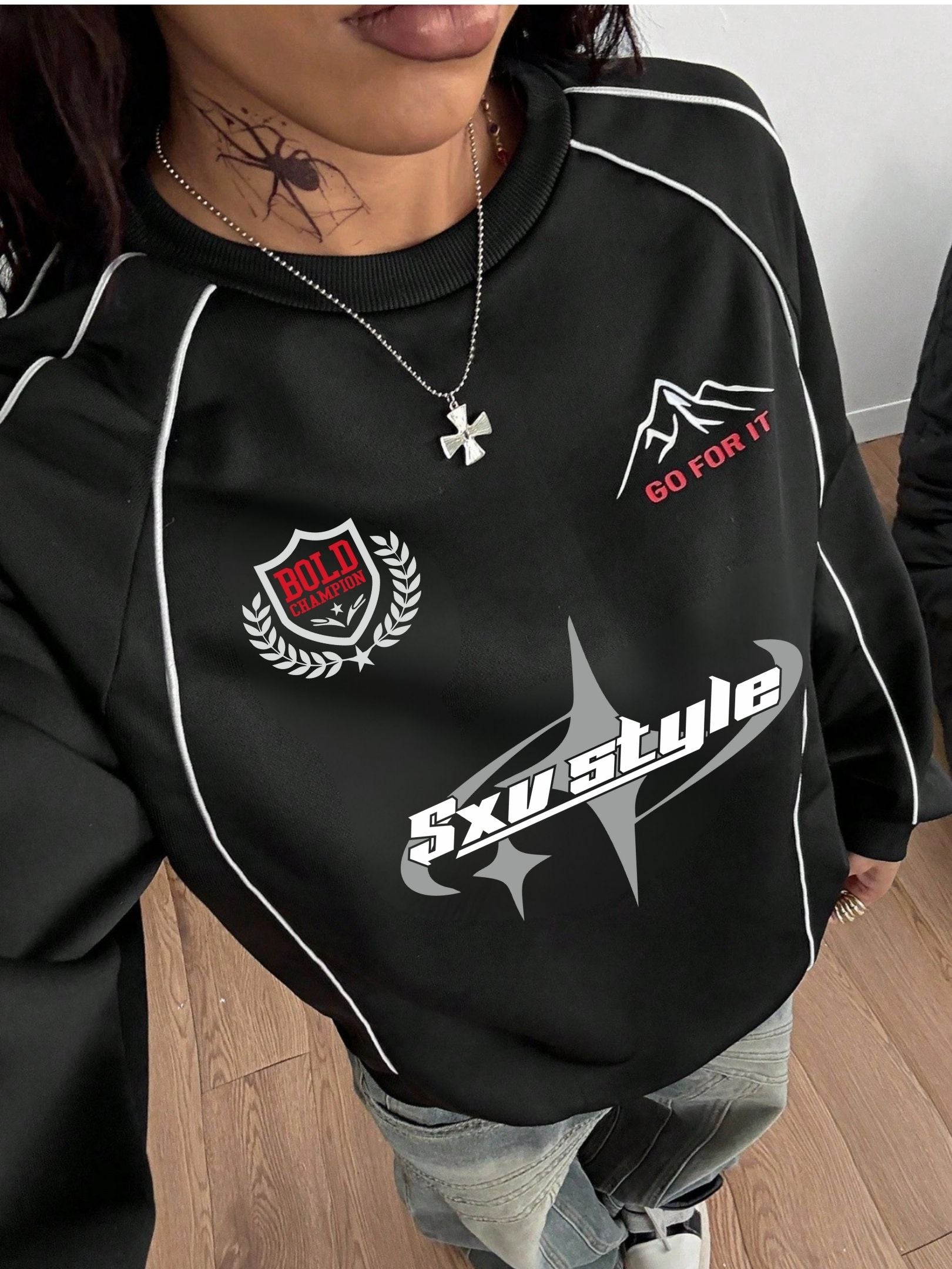 SXV 'GO FOR IT’ Printed Cool Aesthetic Drop Shoulder Oversized Baggy Sweatshirt