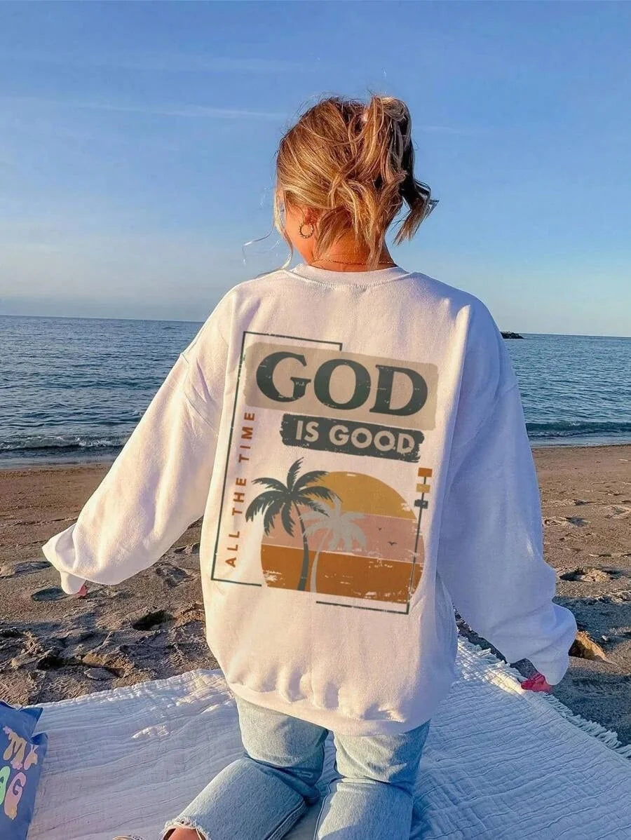 SXV 'god is good’ Printed Cool Aesthetic Drop Shoulder Oversized Baggy Sweatshirt