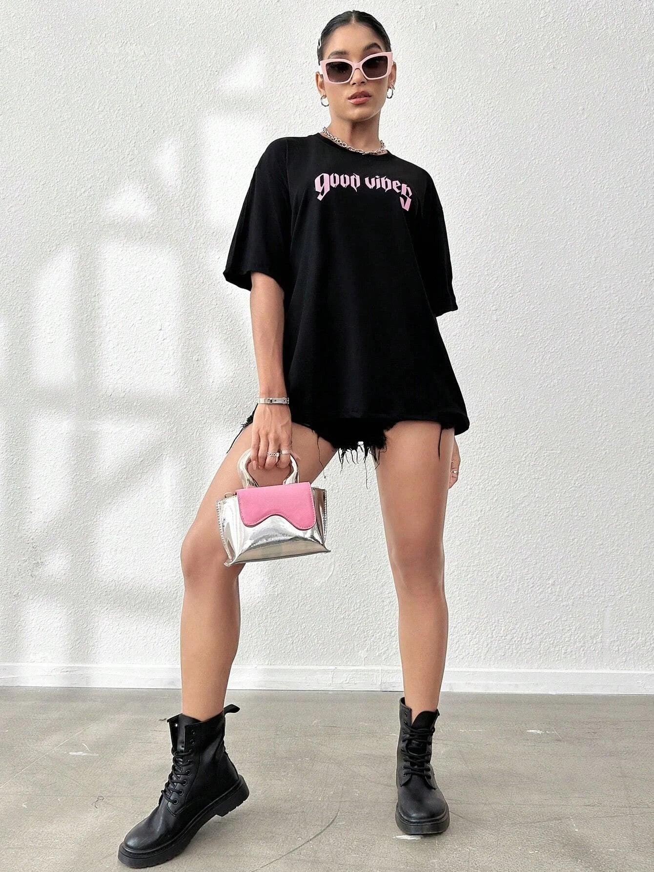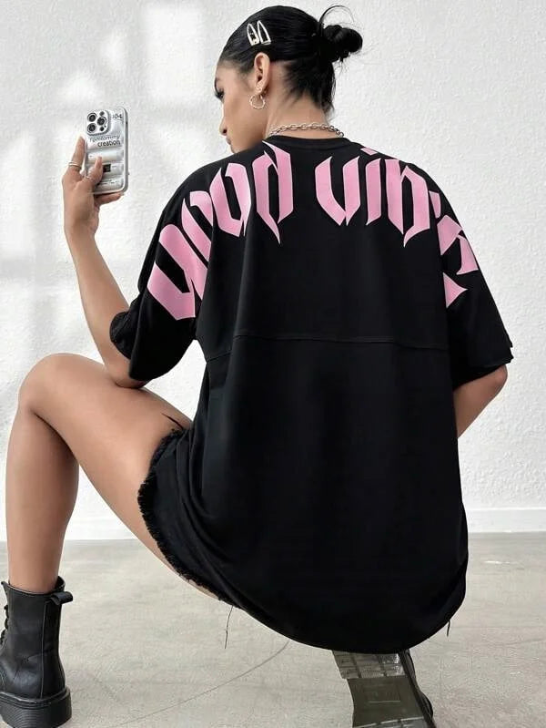 SXV 'GOOD VIBES’ Printed Cool Aesthetic Oversized Baggy T-shirt