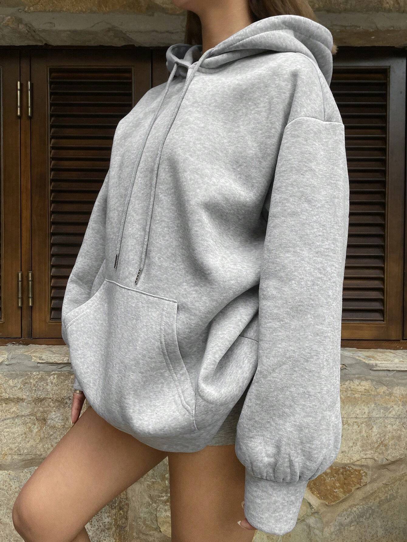 SXV Grey Solid Autumn New Loose Casual Hooded Sweatshirt For Women