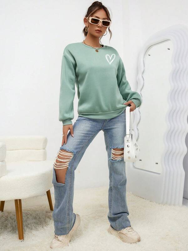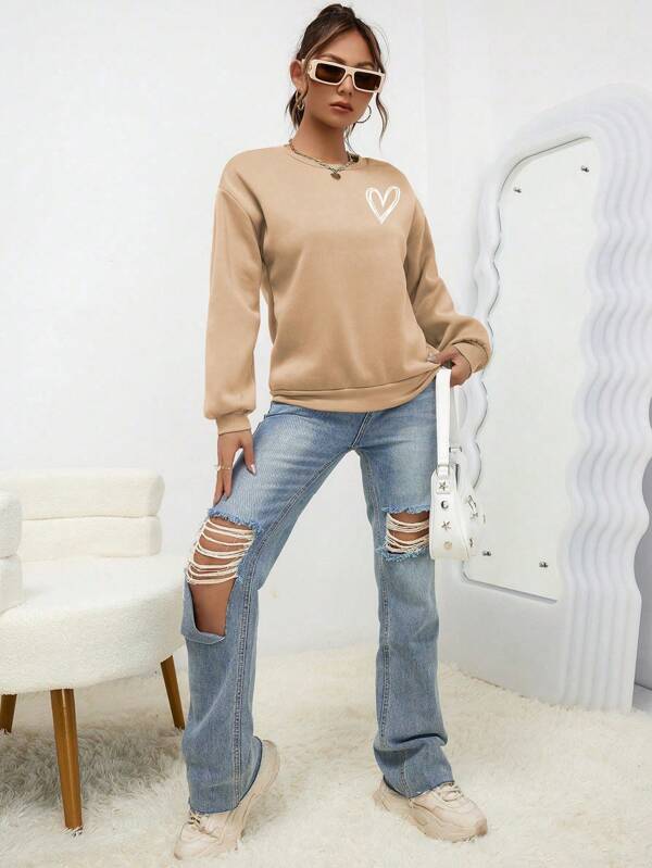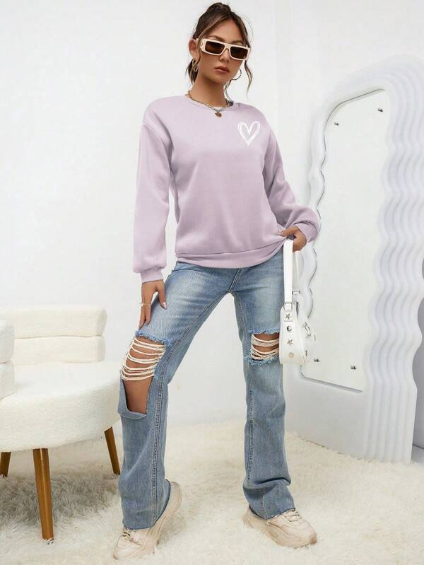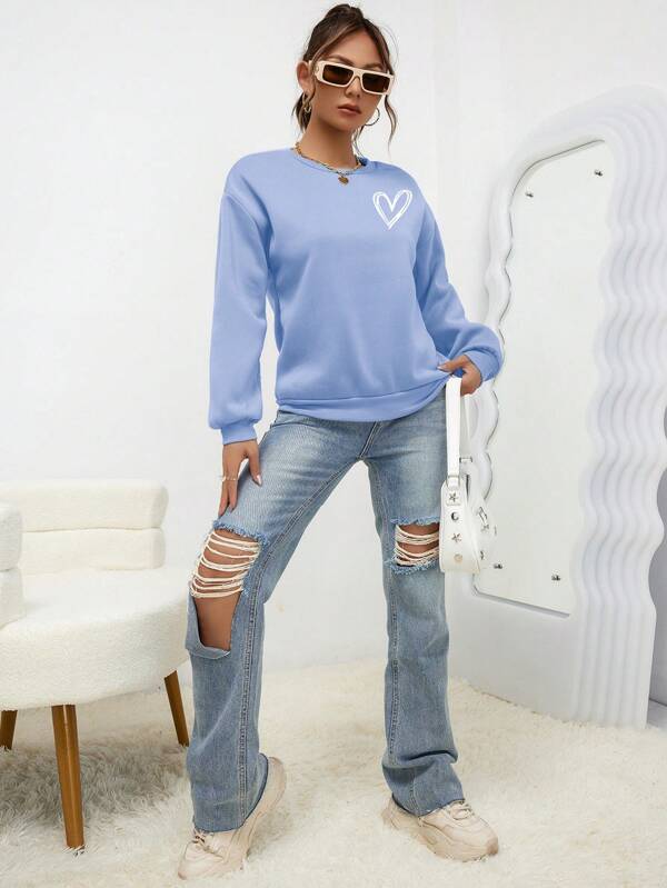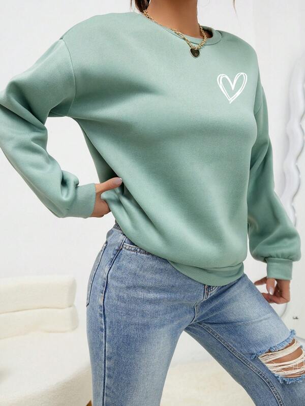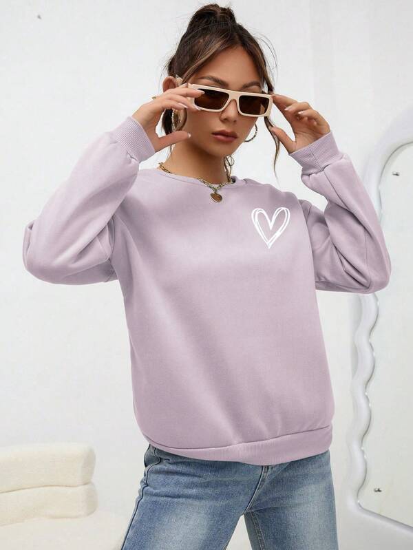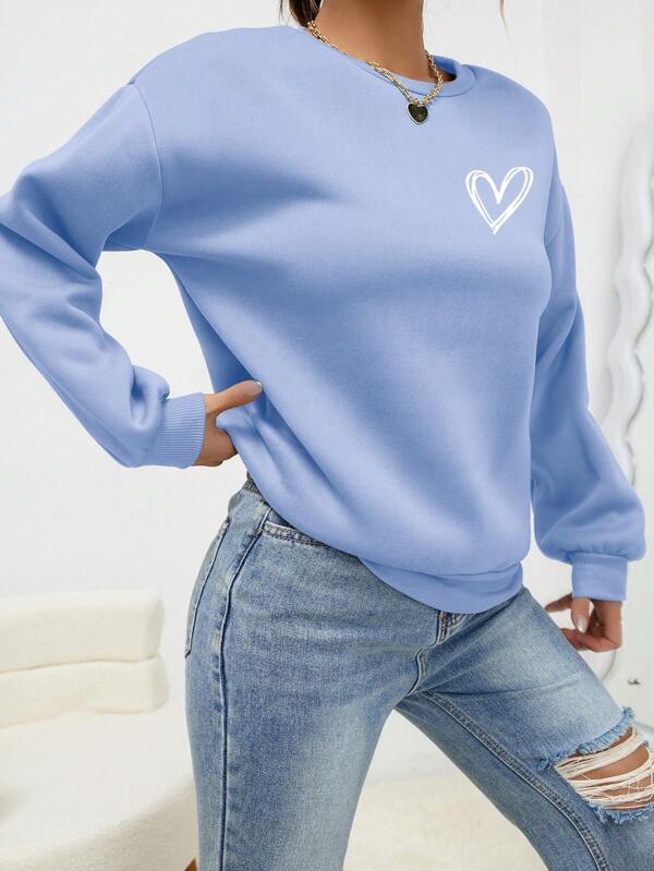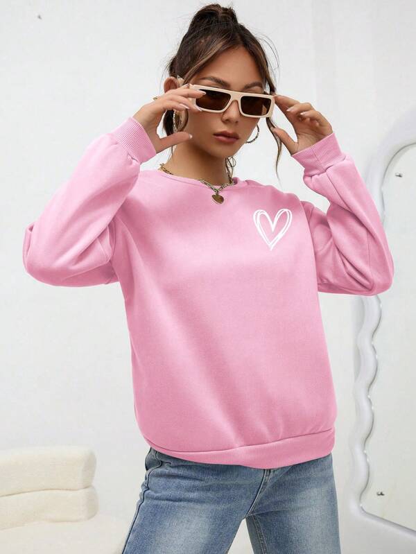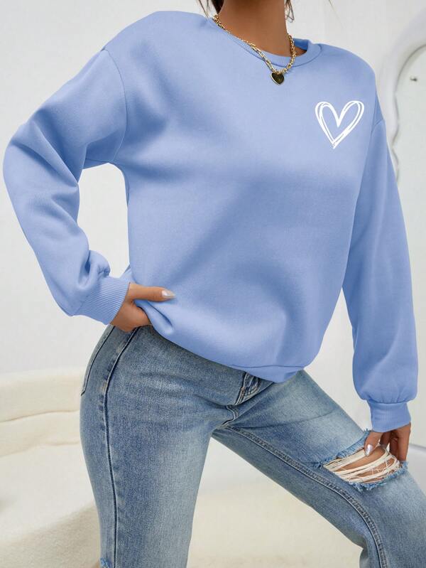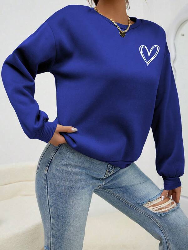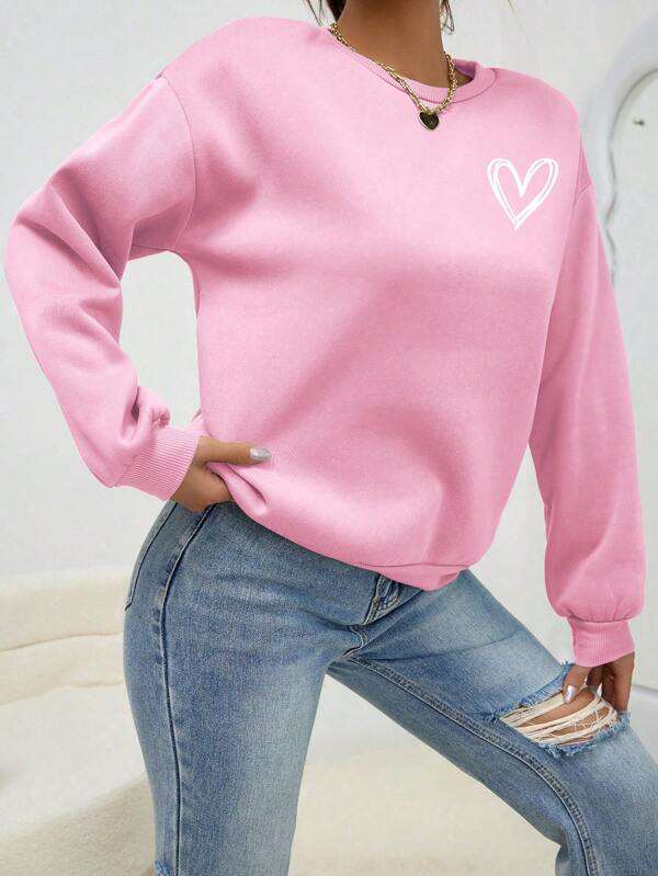 SXV 'Heart’ Printed Cool Aesthetic Drop Shoulder Oversized Sweatshirt