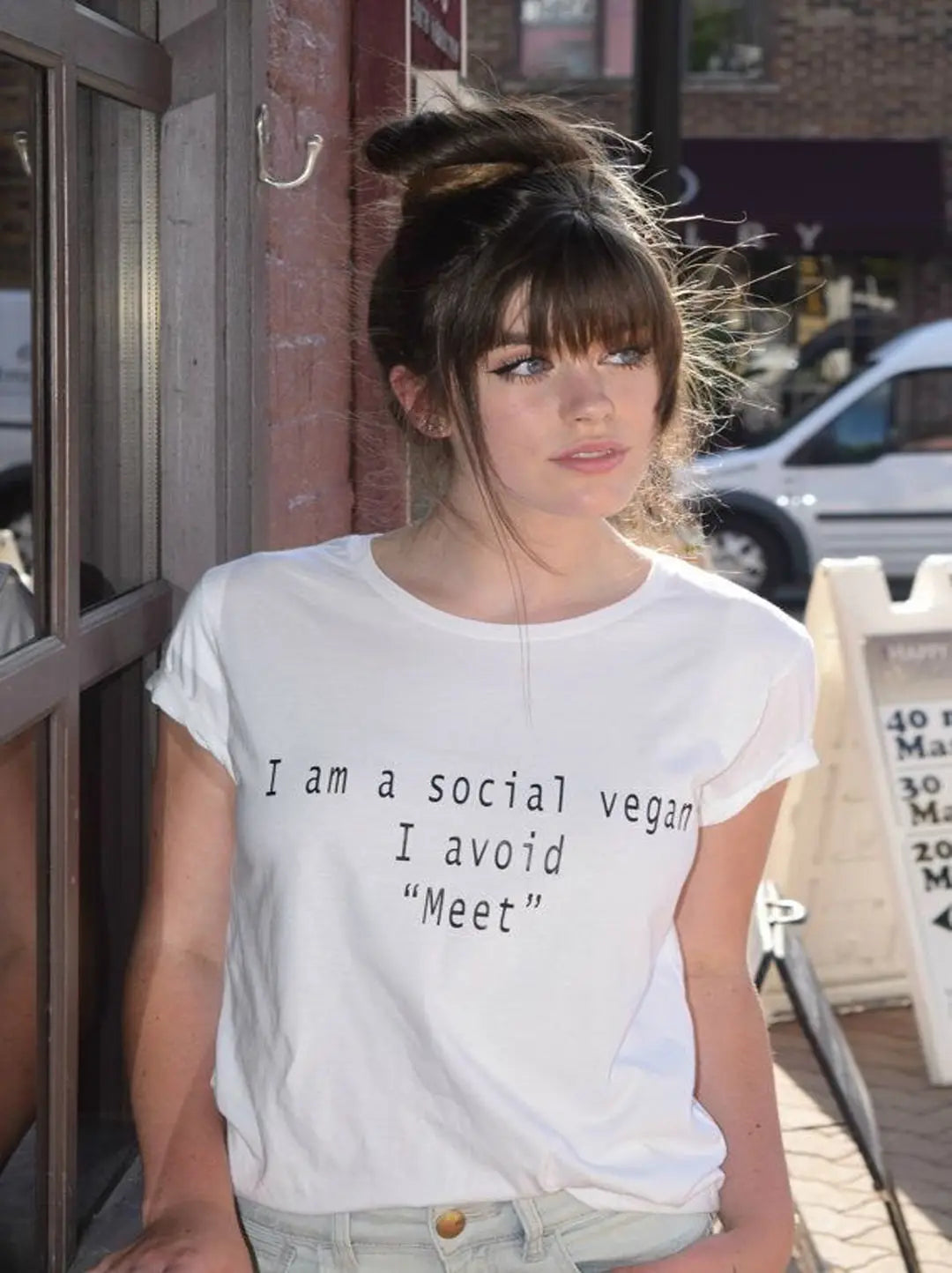 SXV 'i am a social vegan , i avoid meet’ Printed Cool Aesthetic Oversized Baggy T-shirt