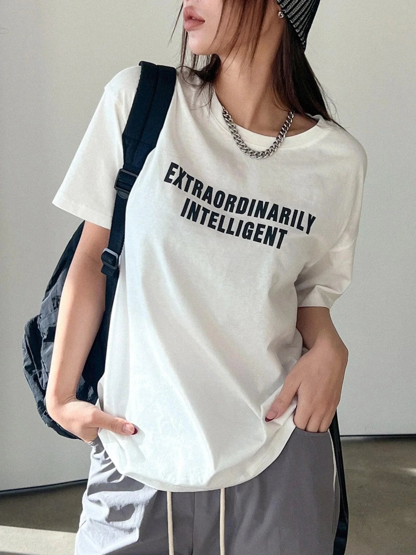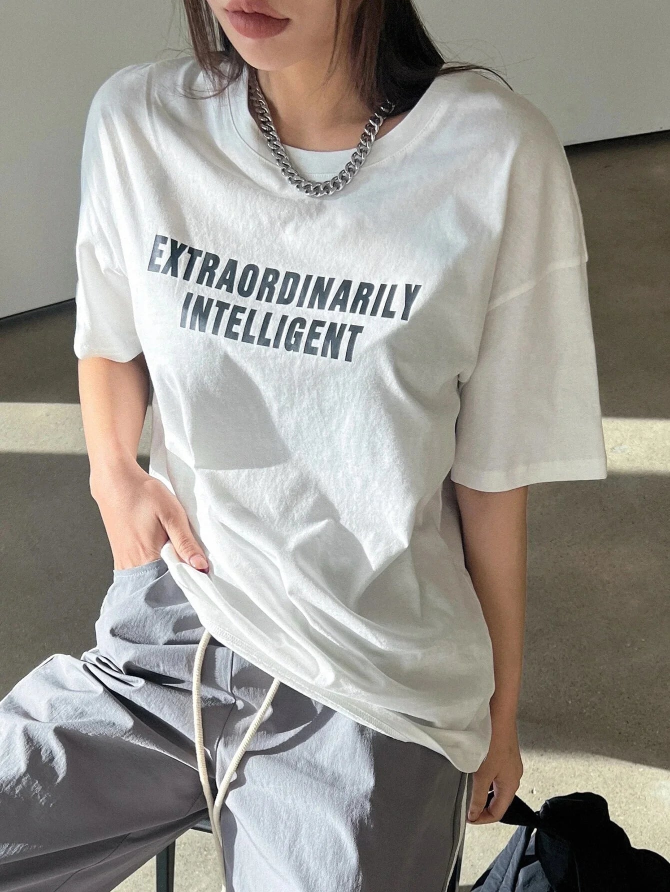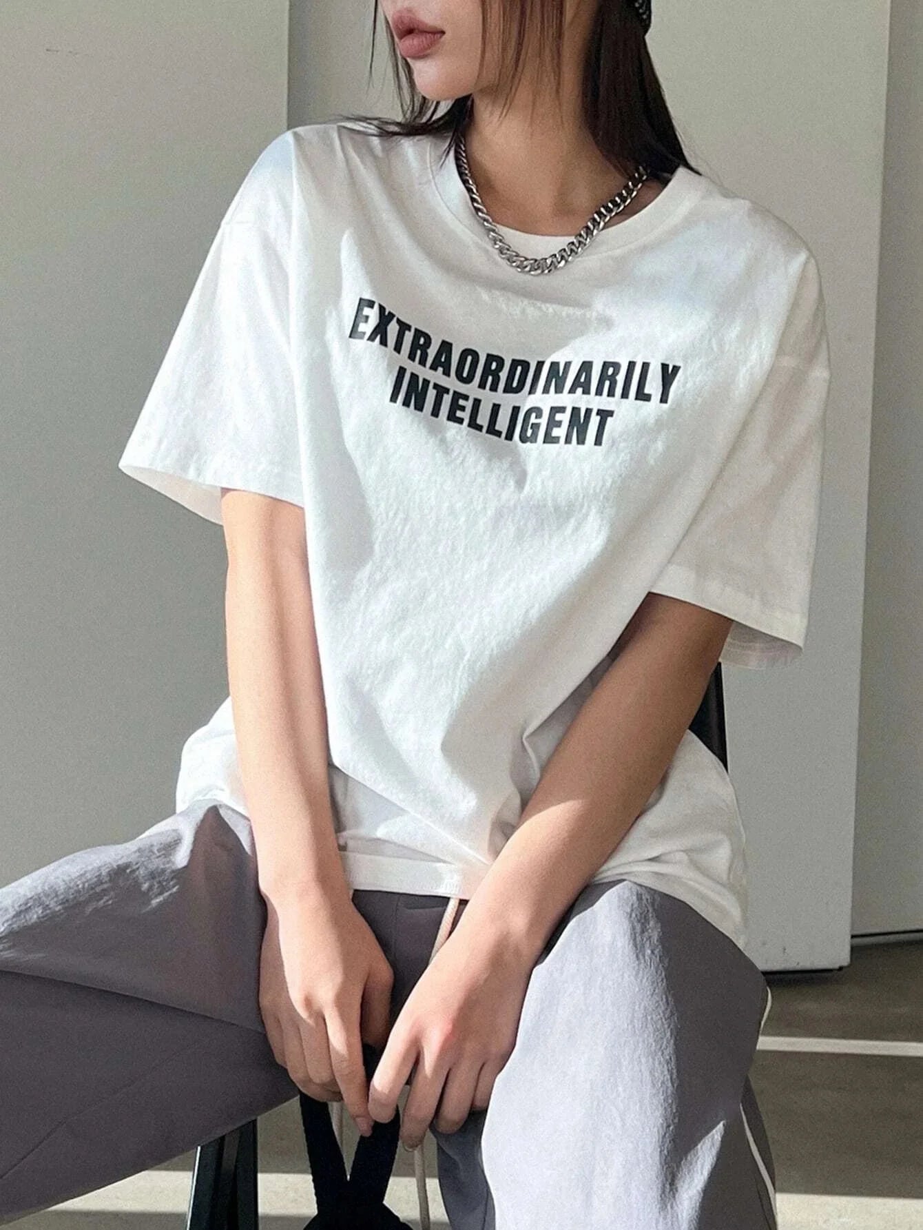 SXV 'Exraoridinarily Intelliegent’ Printed Cool Aesthetic Oversized T-shirt
