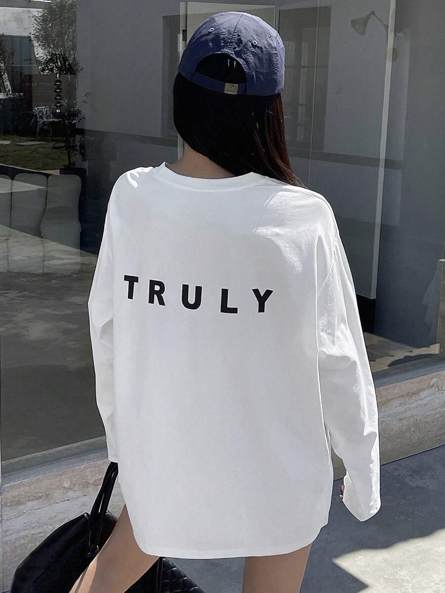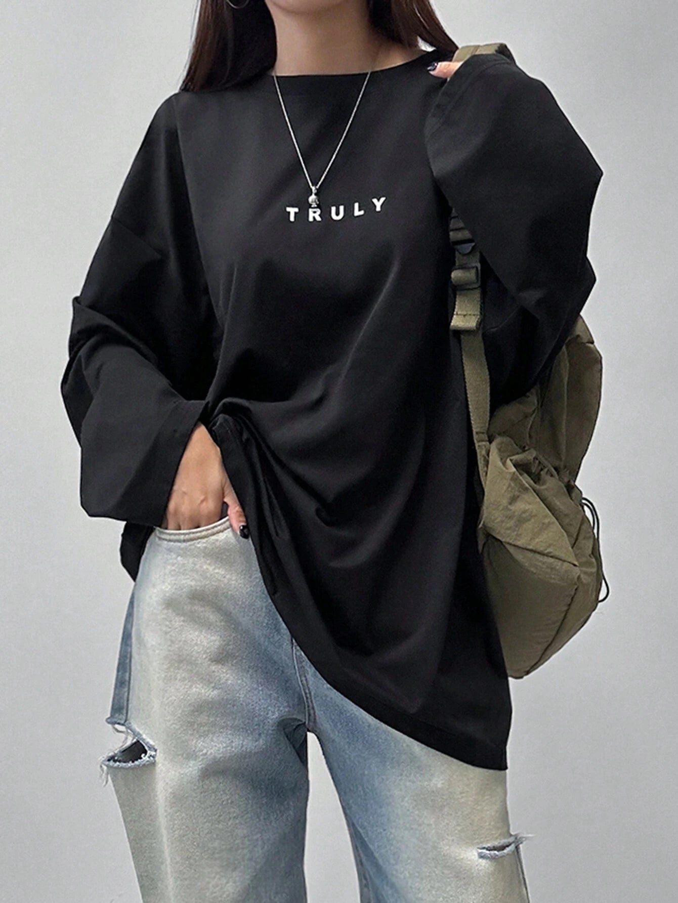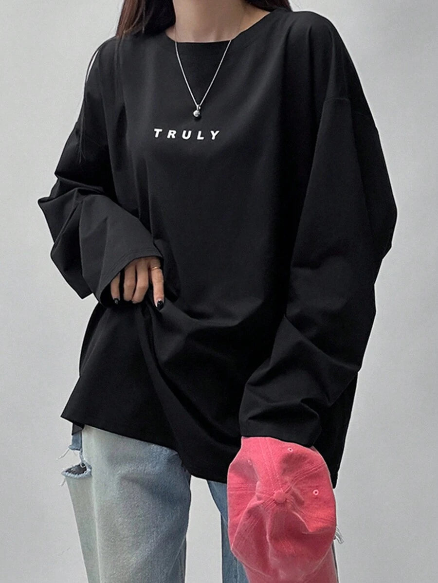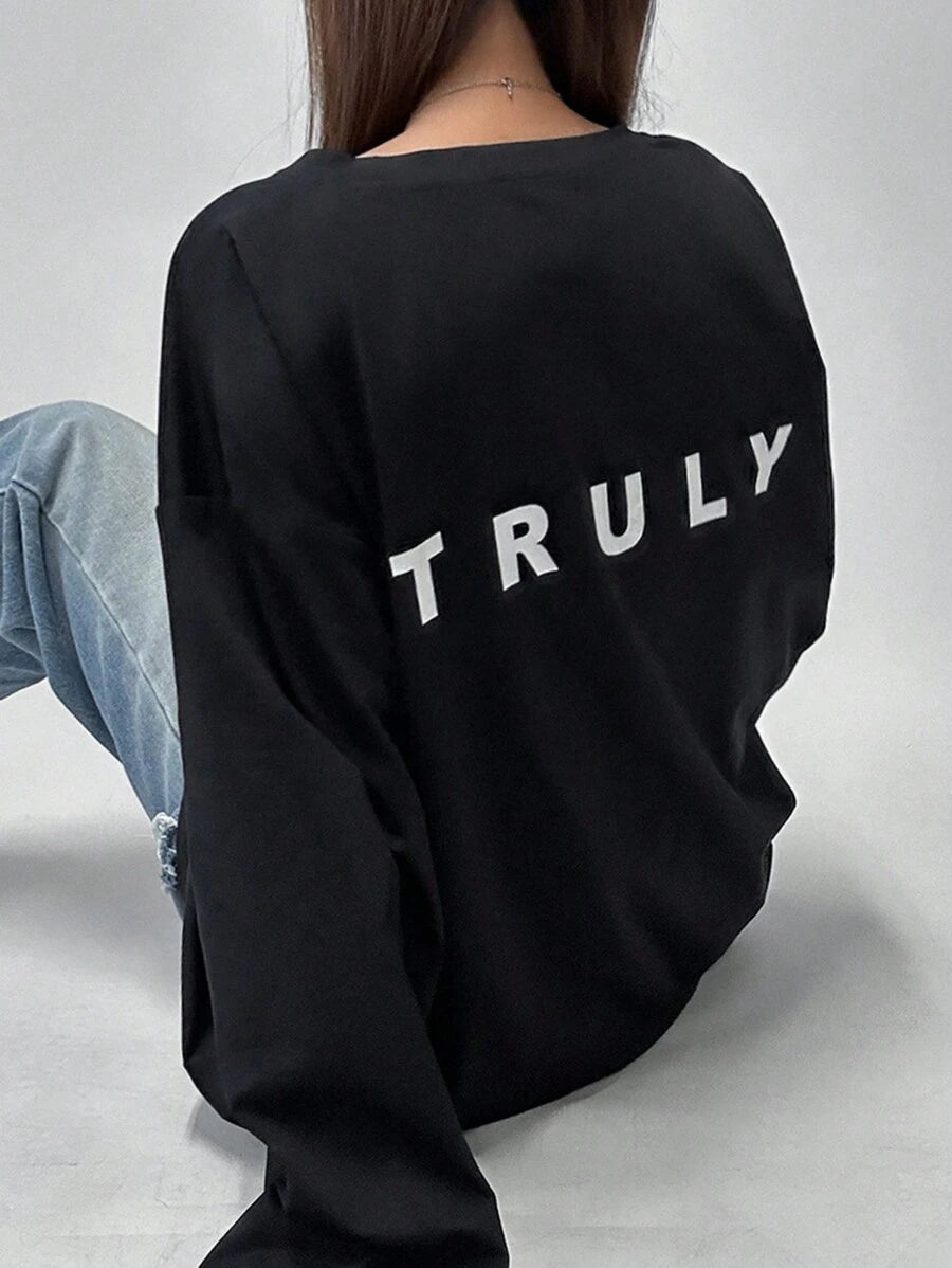 SXV 'TRULY’ Printed Aesthetic Drop Shoulder Long sleeves Oversized Baggy T-shirt