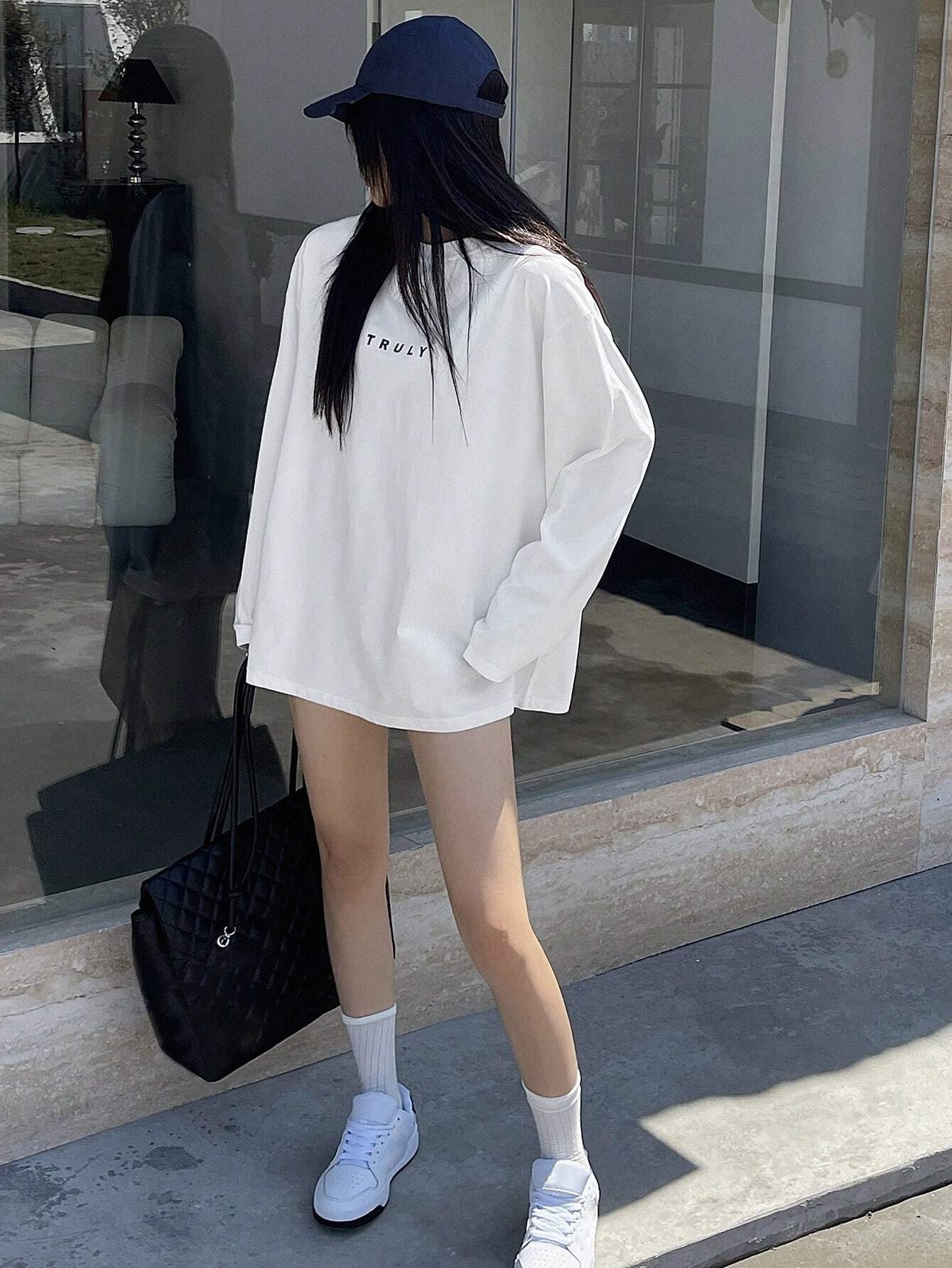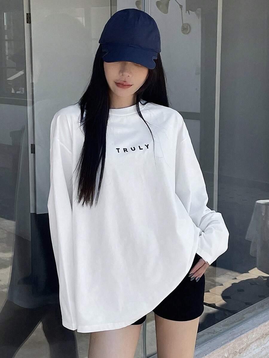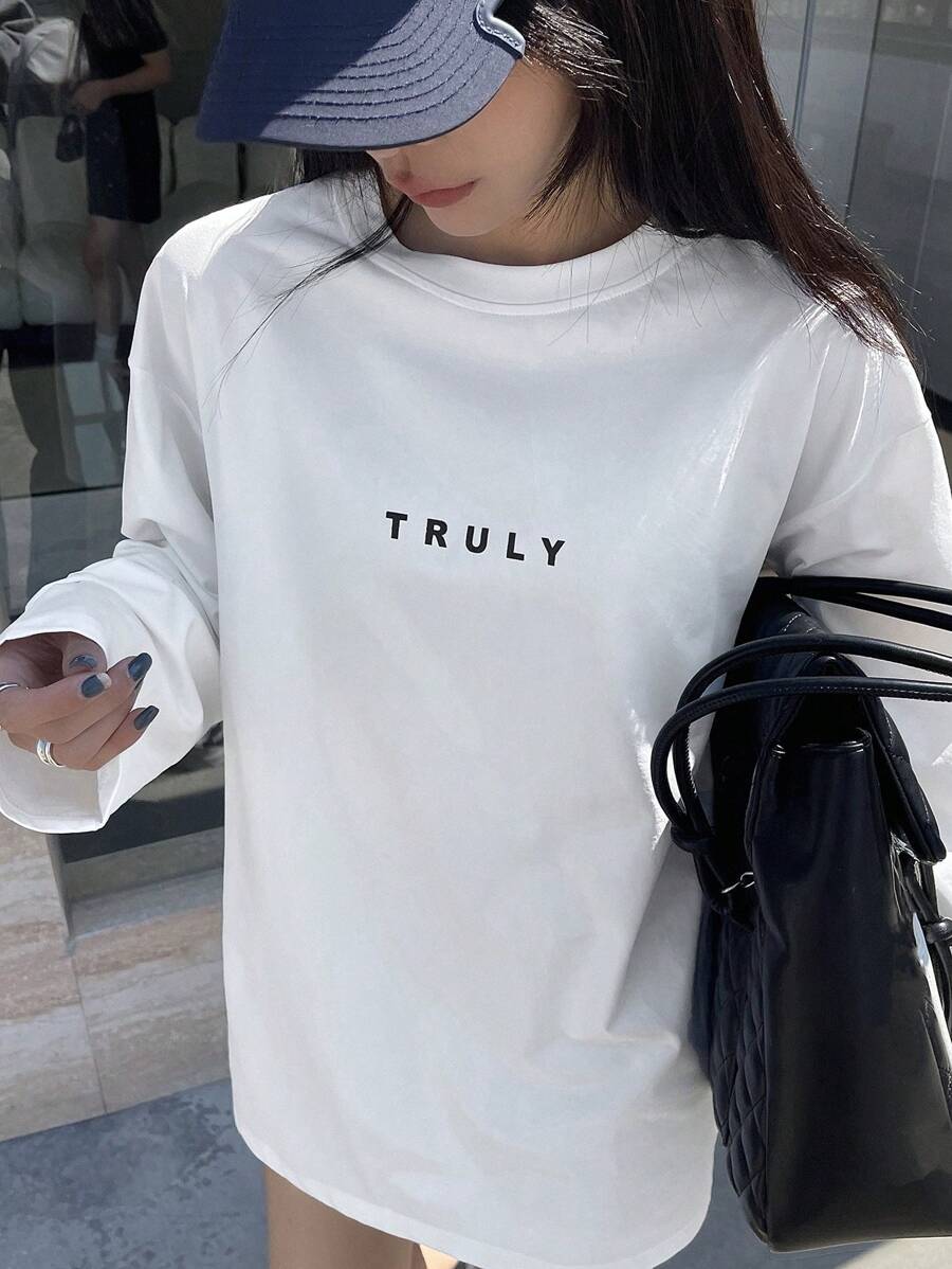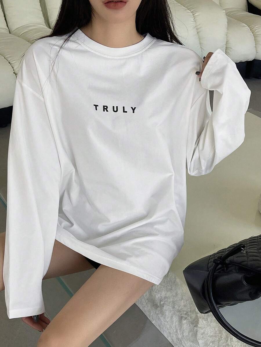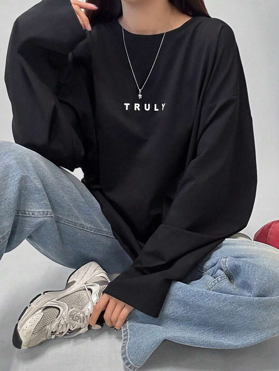 SXV 'TRULY’ Printed Aesthetic Drop Shoulder Long sleeves Oversized Baggy T-shirt