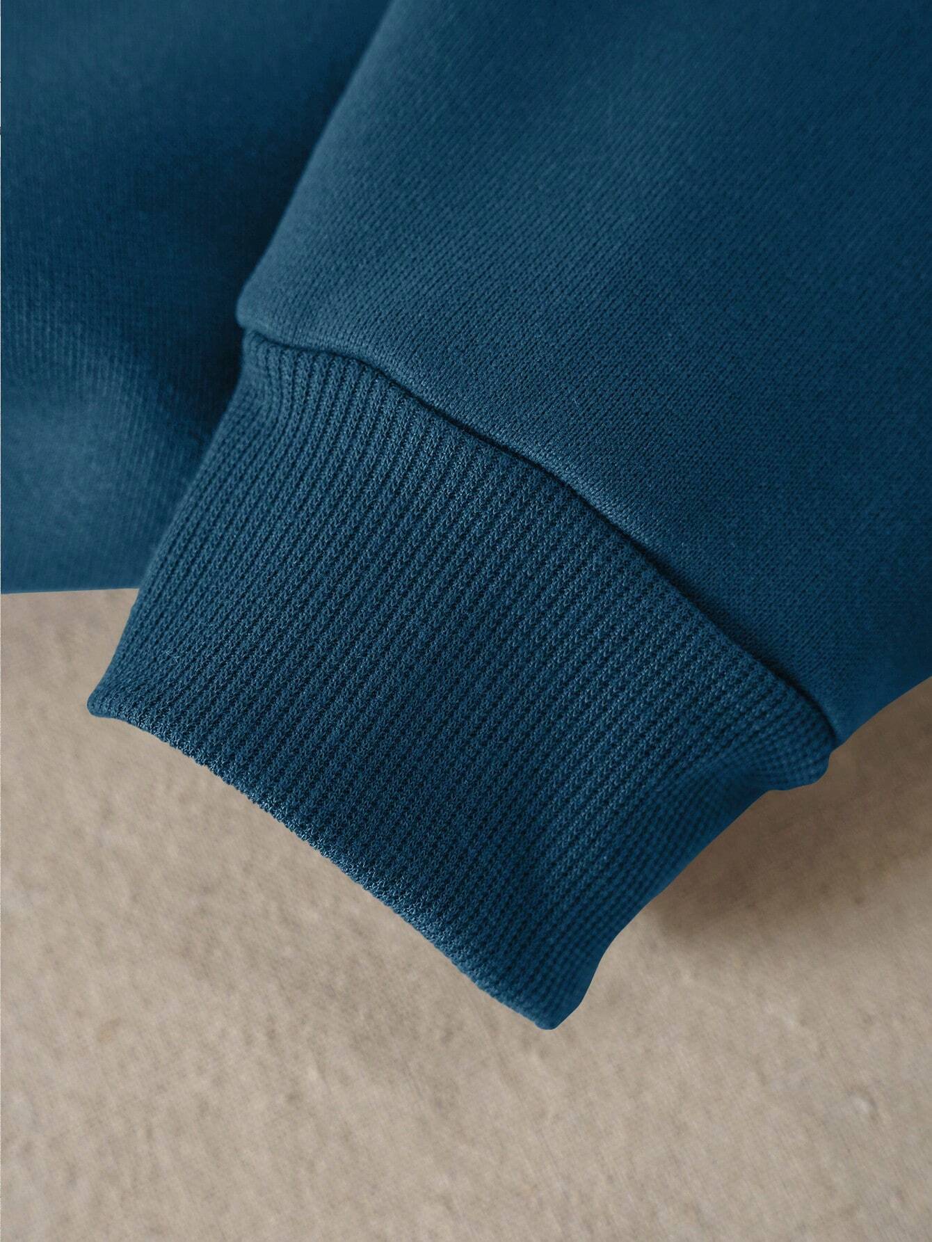 SXV Letter & Floral Print Thermal Pullover