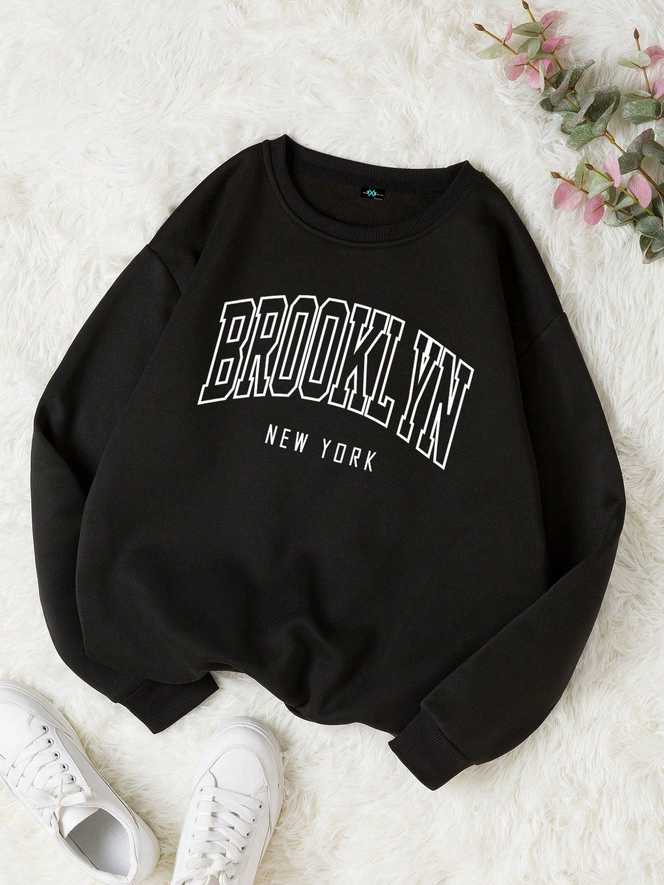 SXV Letter Graphic Thermal Lined Sweatshirt Pullover Fall Outfit