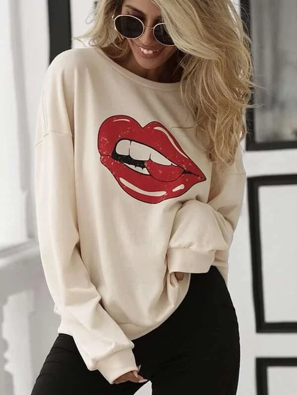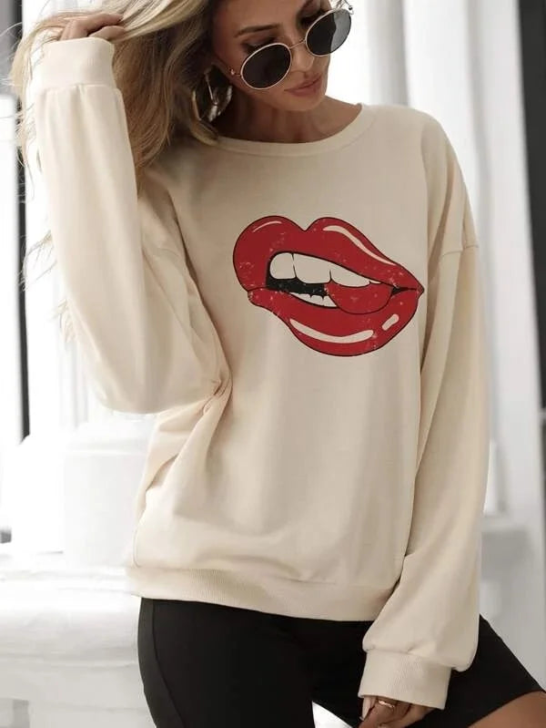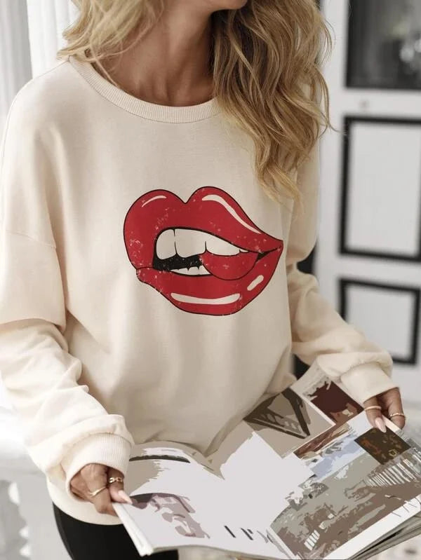 SXV 'Lips’ Printed Cool Aesthetic Drop Shoulder Oversized Sweatshirt