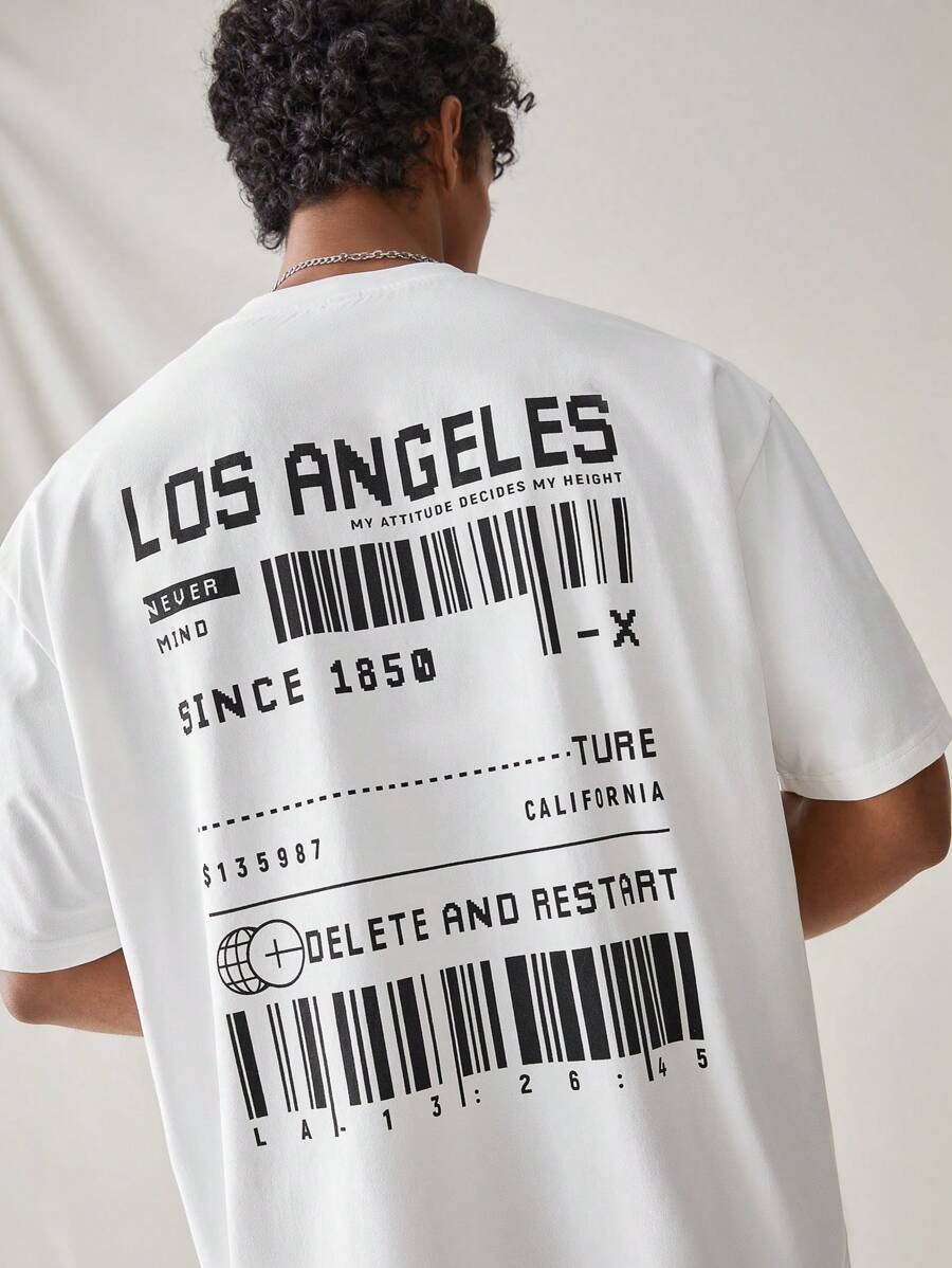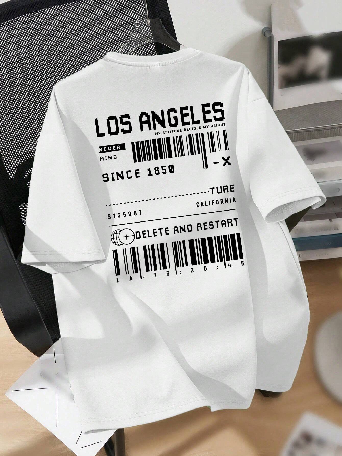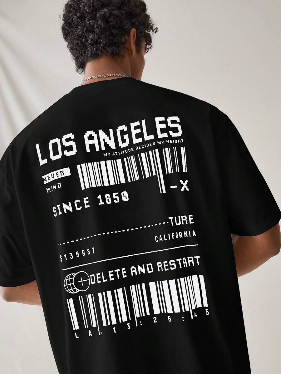 SXV 'los angel barcode’ Printed Cool Aesthetic Oversized Baggy T-shirt