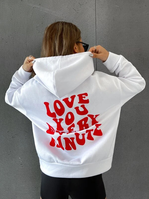 SXV 'LOVE U EVERY MINUTE’ Printed Cool Aesthetic Sweatshirt Hoodie