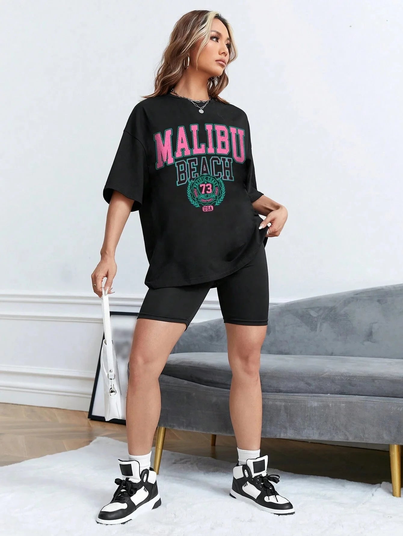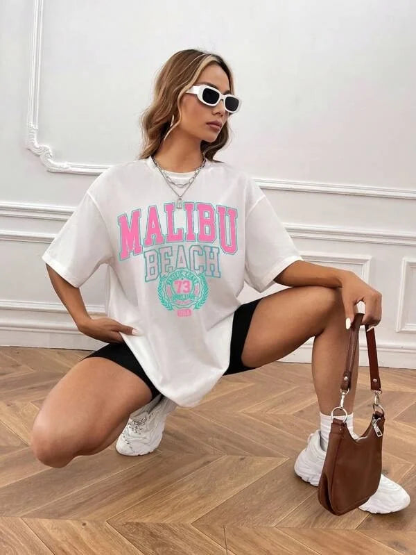 SXV 'MALIBU BEACH’ Printed Cool Aesthetic Oversized Baggy T-shirt