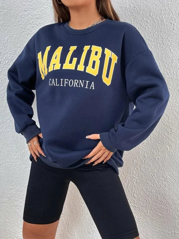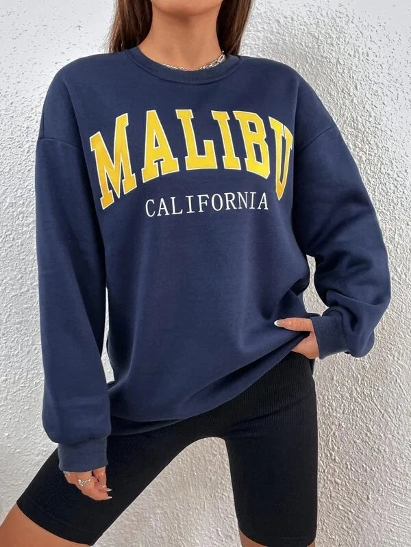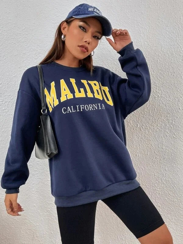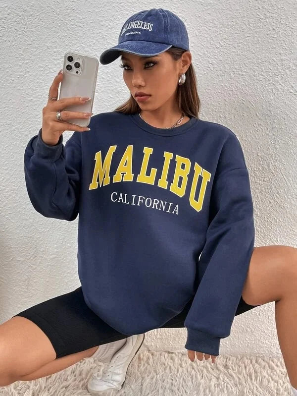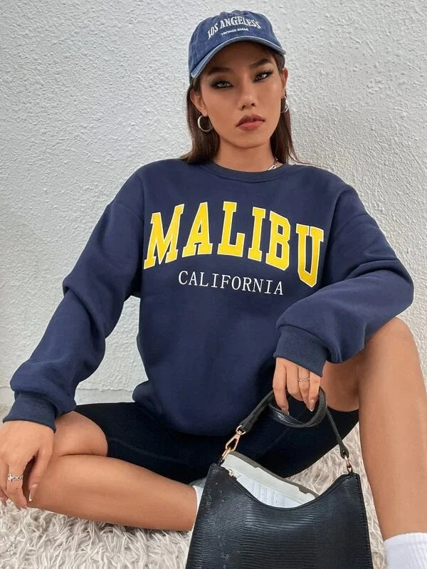 SXV 'Malibu California’ Printed Cool Aesthetic Drop Shoulder Oversized Sweatshirt