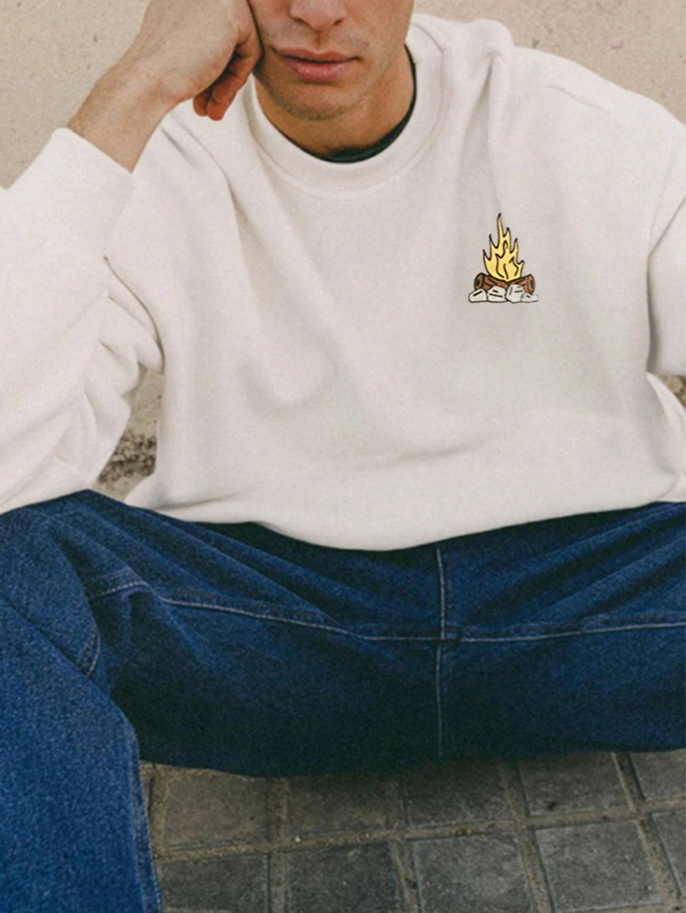 SXV Men's Casual Street Wild Bloom Cartoon Camping Graphic Print Crew Neck Sweatshirt, Autumn