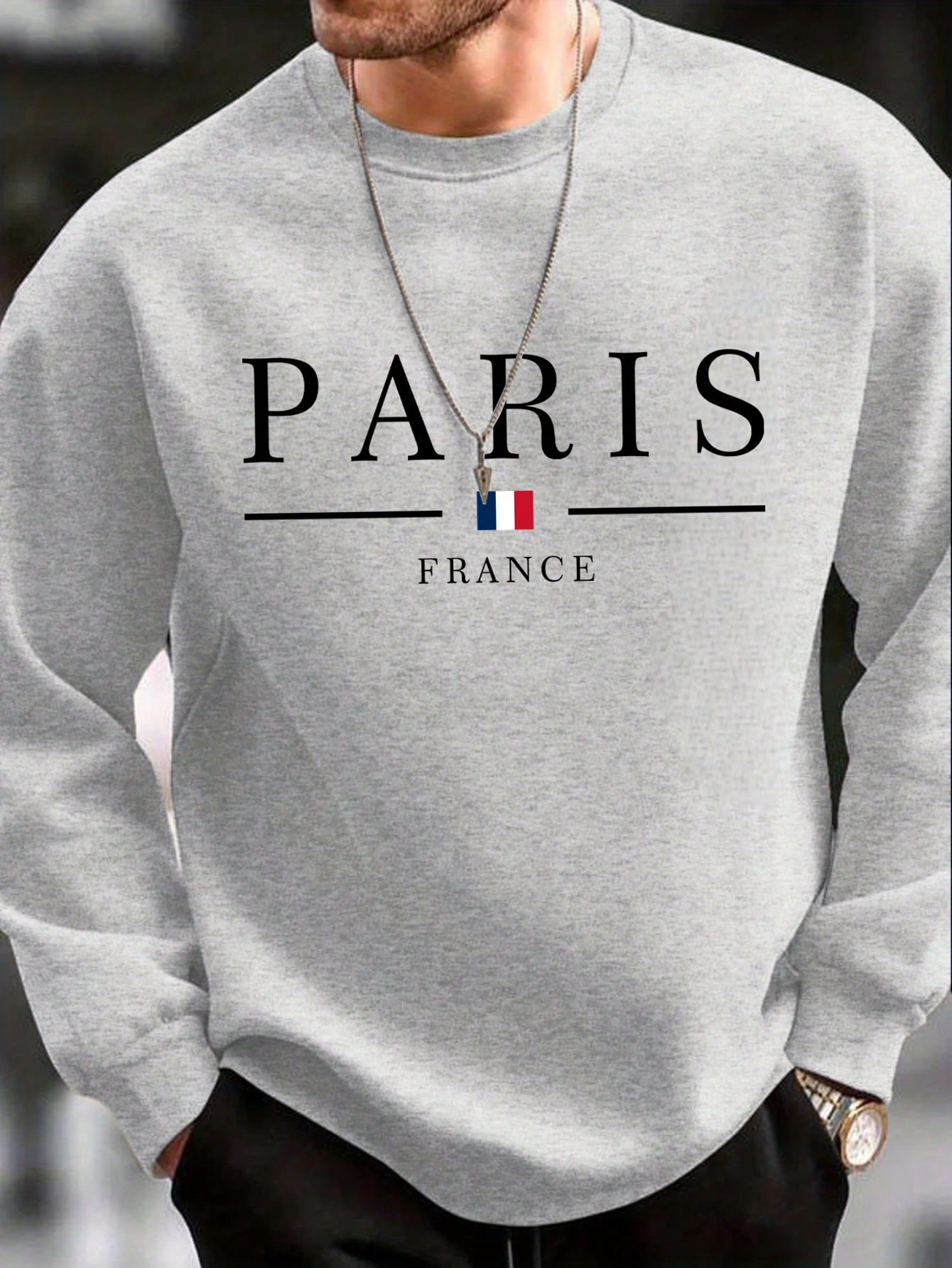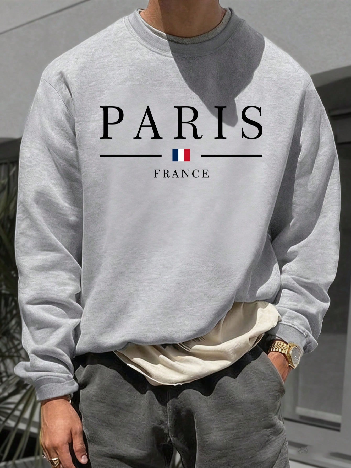SXV Men's Casual Versatile Printed Crew Neck Sweatshirt Paris Vibe