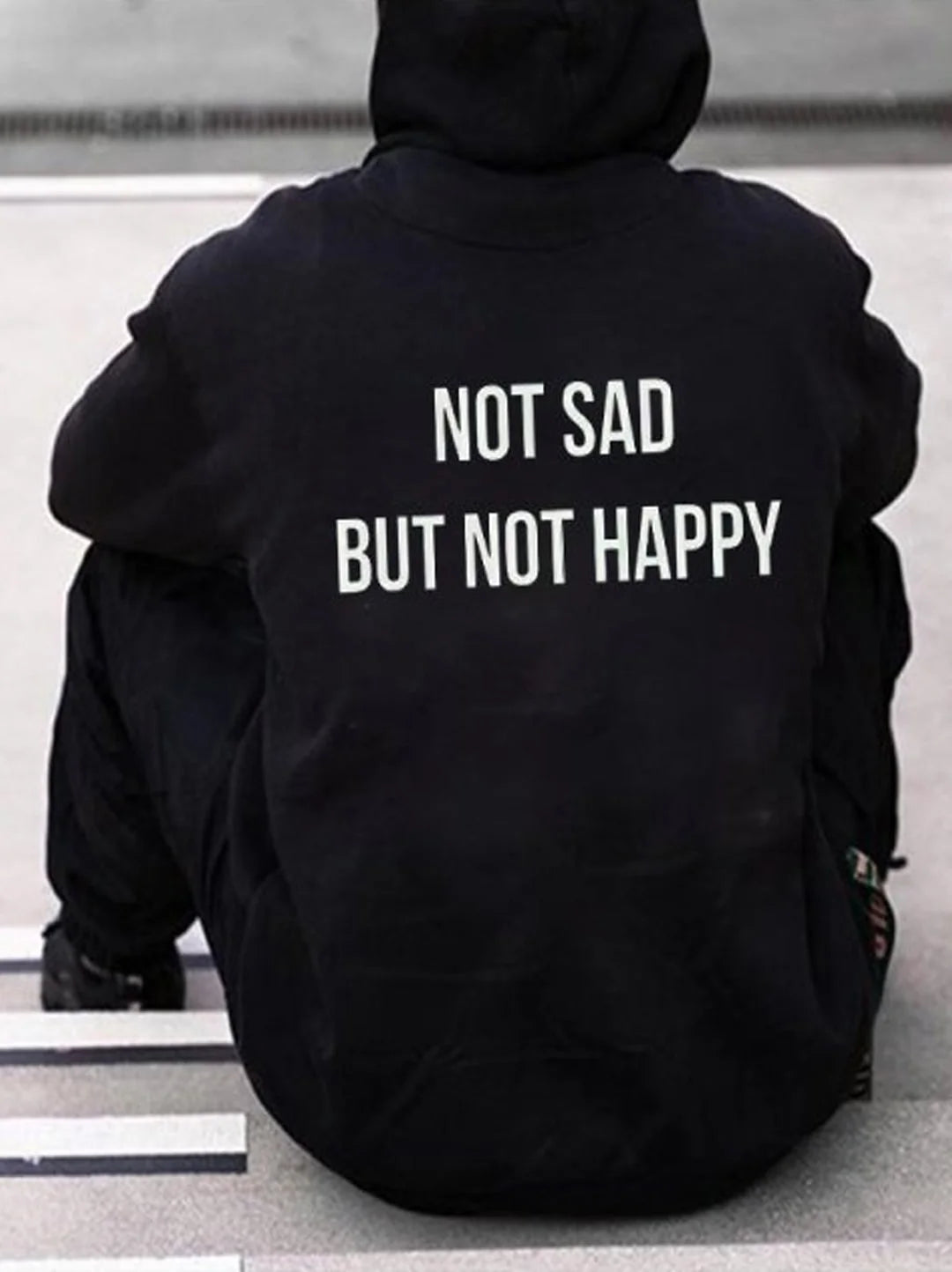 SXV 'not sad but not happy’ Printed Cool Aesthetic Sweatshirt Hoodie