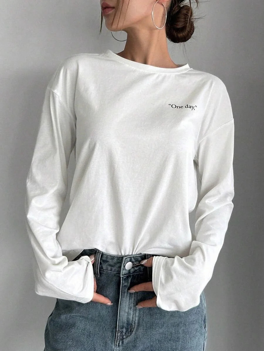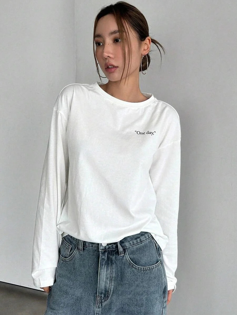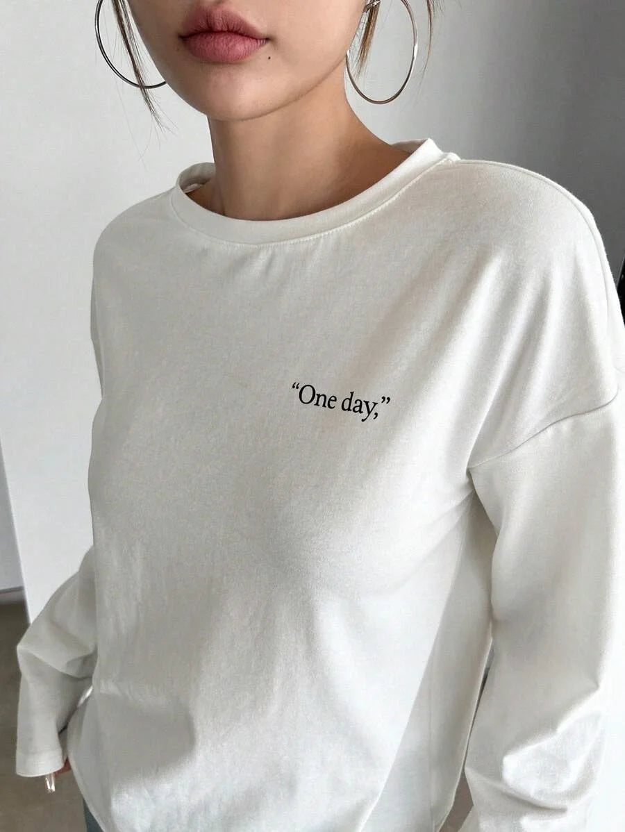 SXV 'One day’ Printed Aesthetic Drop Shoulder Long sleeves Oversized Baggy T-shirt