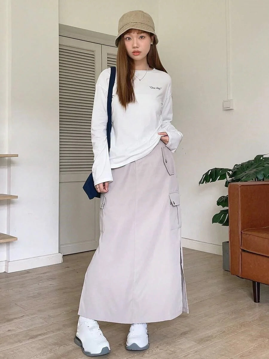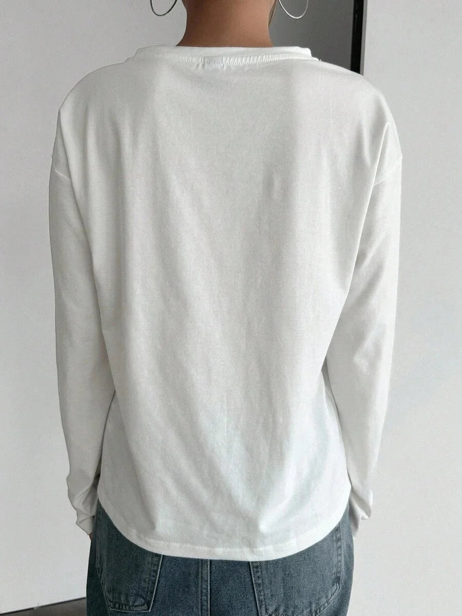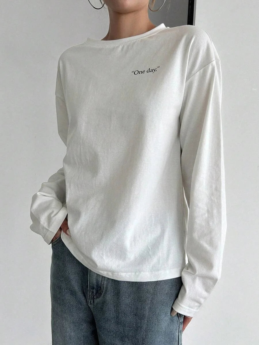 SXV 'One day’ Printed Aesthetic Drop Shoulder Long sleeves Oversized Baggy T-shirt