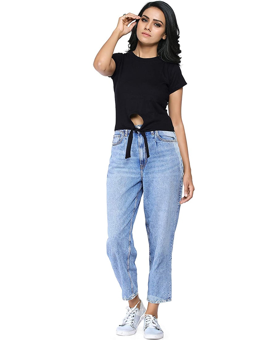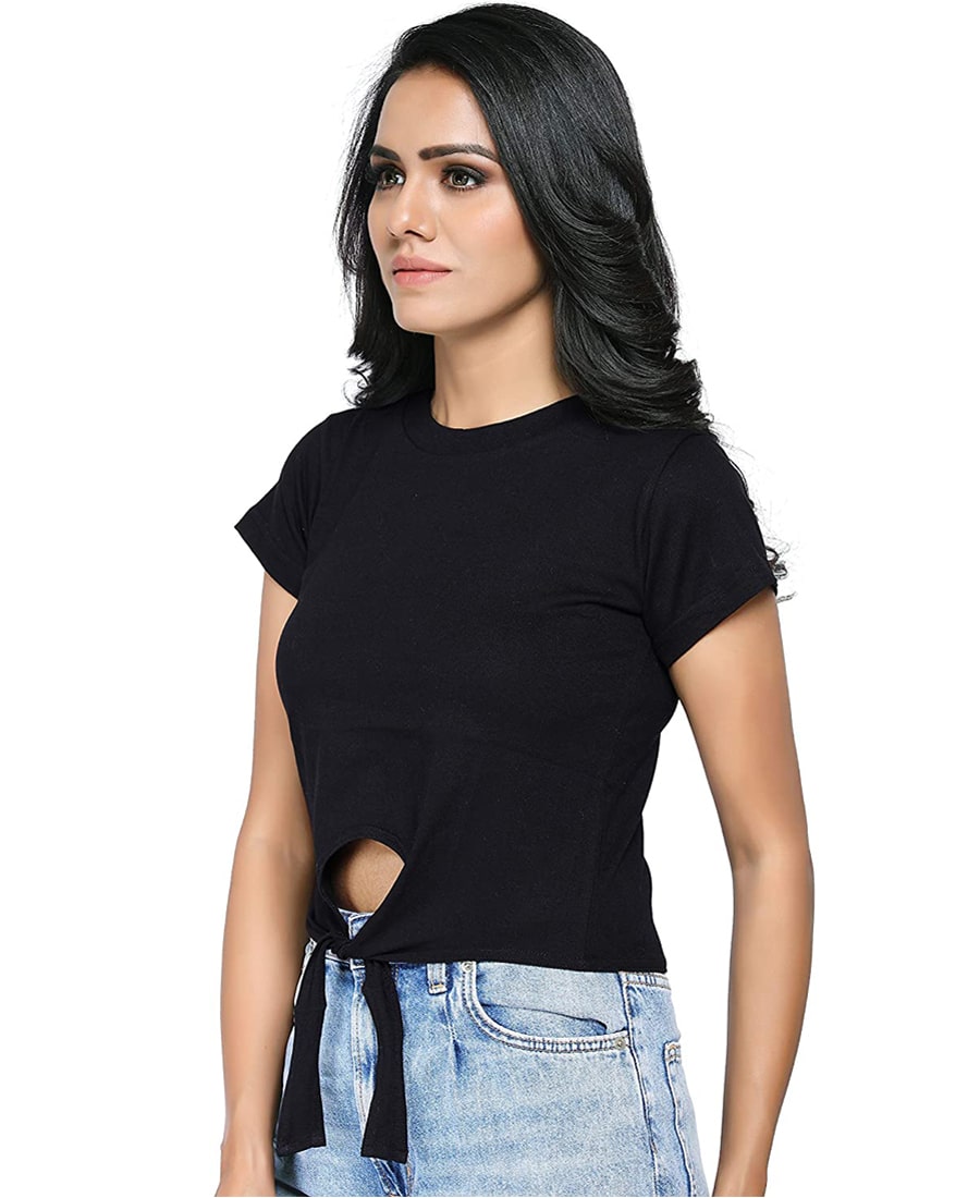 SXV Plain Black TIE Knot Crop TOP for Women (lowest price-non returnable)