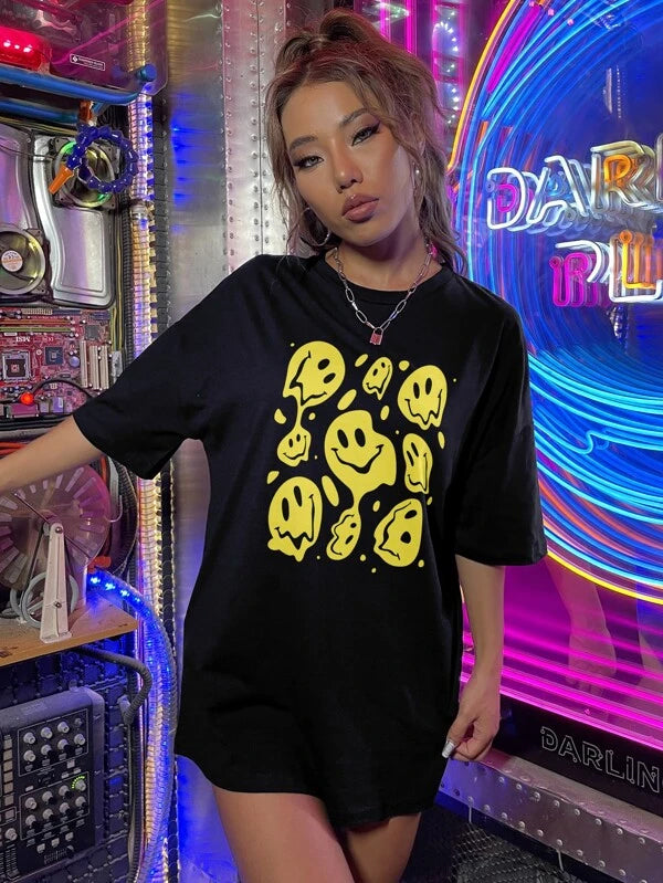 SXV 'DRIPPY YELLOW SMILEY’ Printed Cool Aesthetic Oversized T-shirt