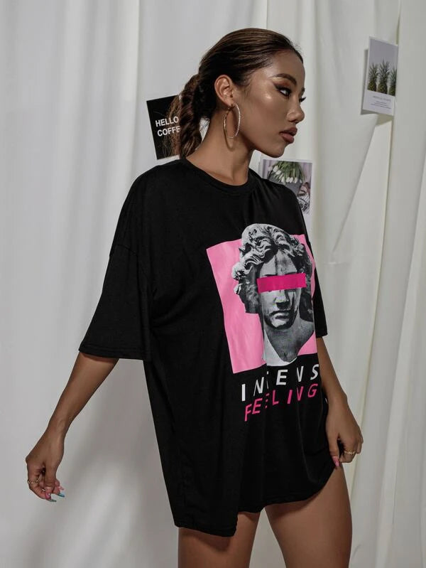 SXV 'INTENSE FEELINGS’ Printed Cool Aesthetic Oversized T-shirt