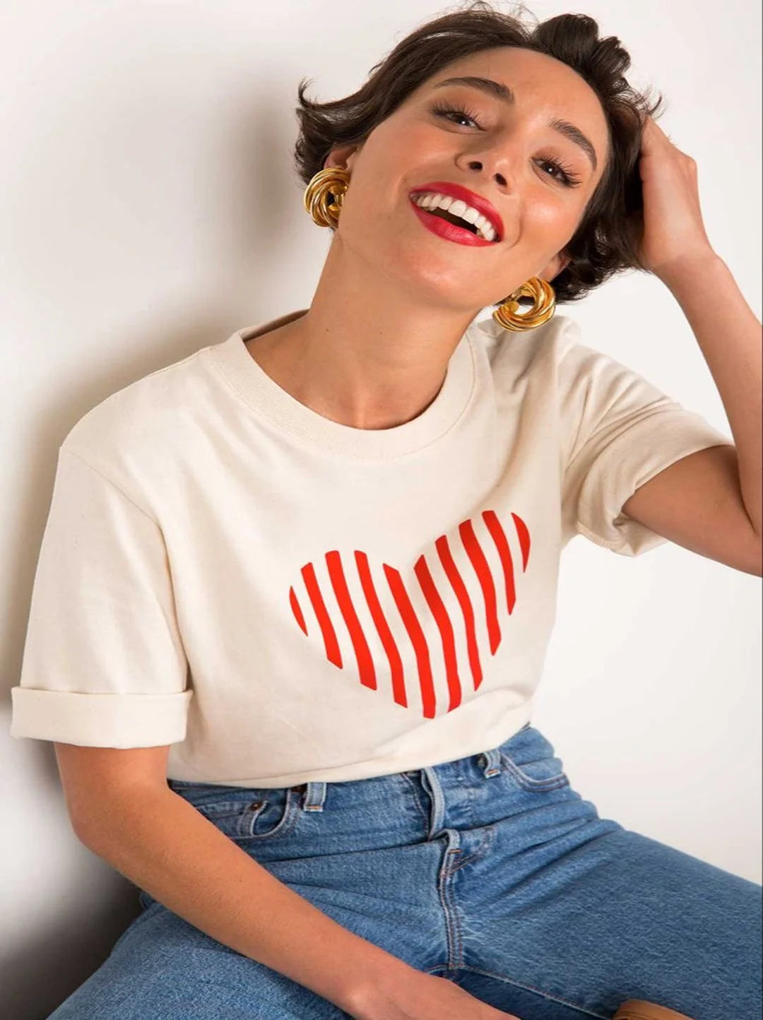 SXV 'red lining heart’ Printed Cool Aesthetic Oversized Baggy T-shirt