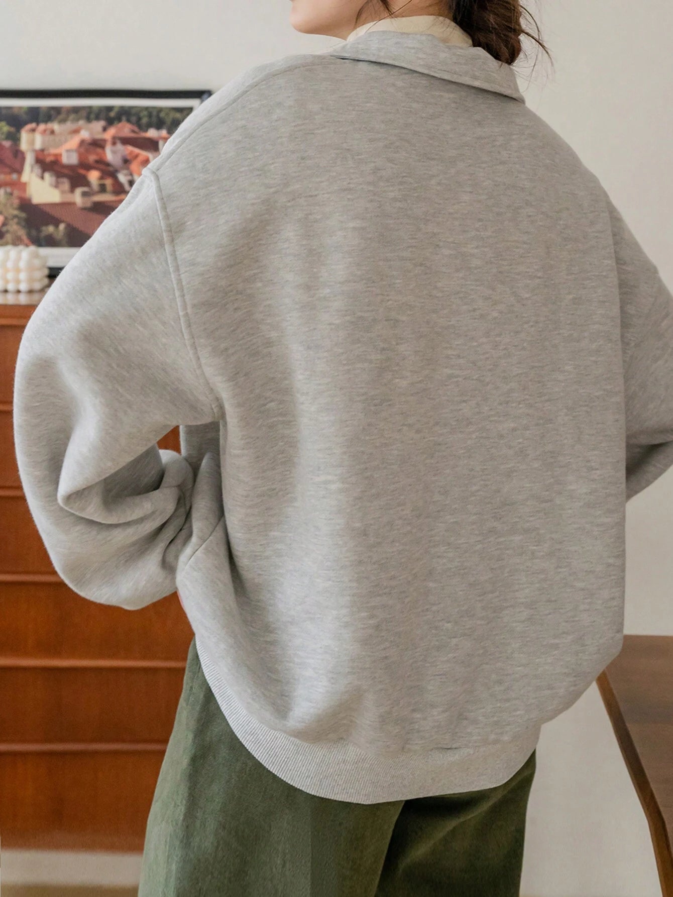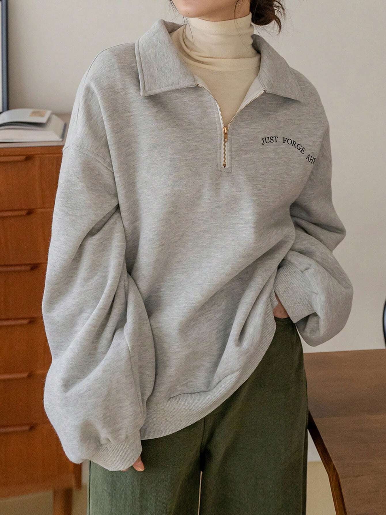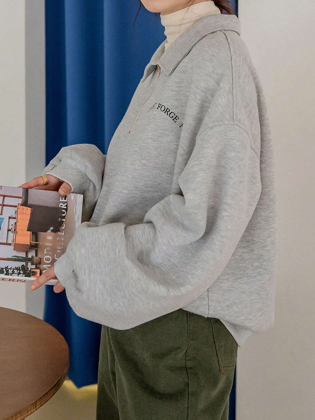 SXV Slogan Graphic Quarter Zip Drop Shoulder Thermal Lined Sweatshirt Without Tee,Fall Clothes