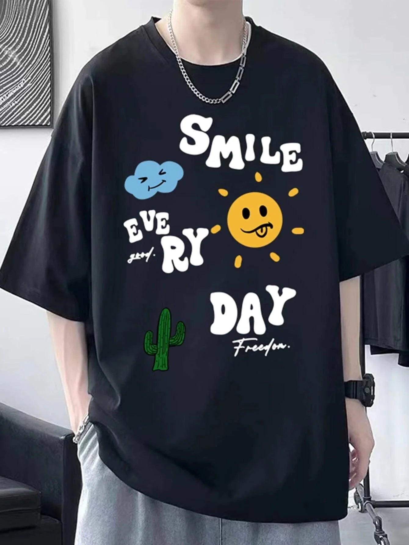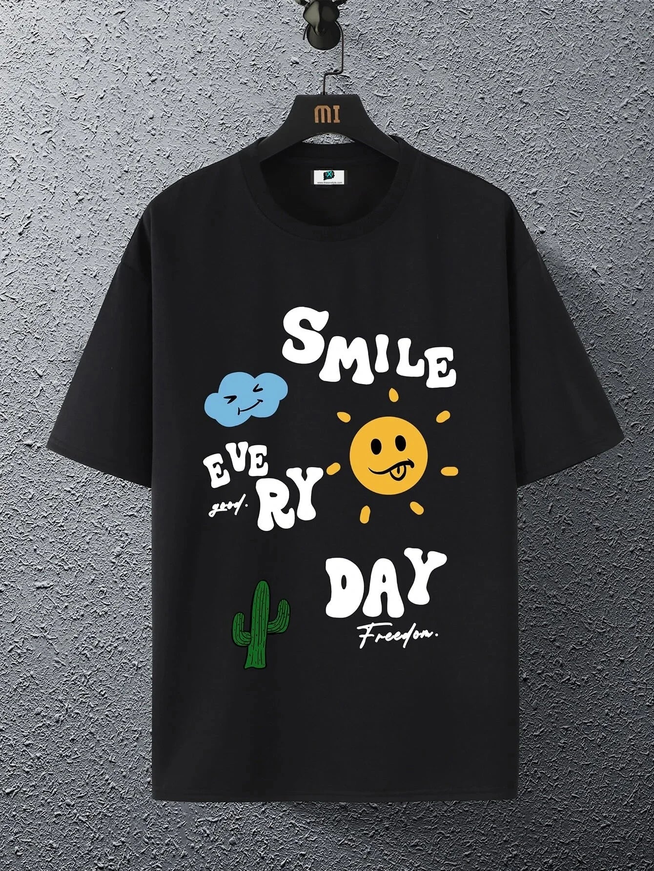 SXV 'Smile Every Day’ Printed Cool Aesthetic Oversized T-shirt