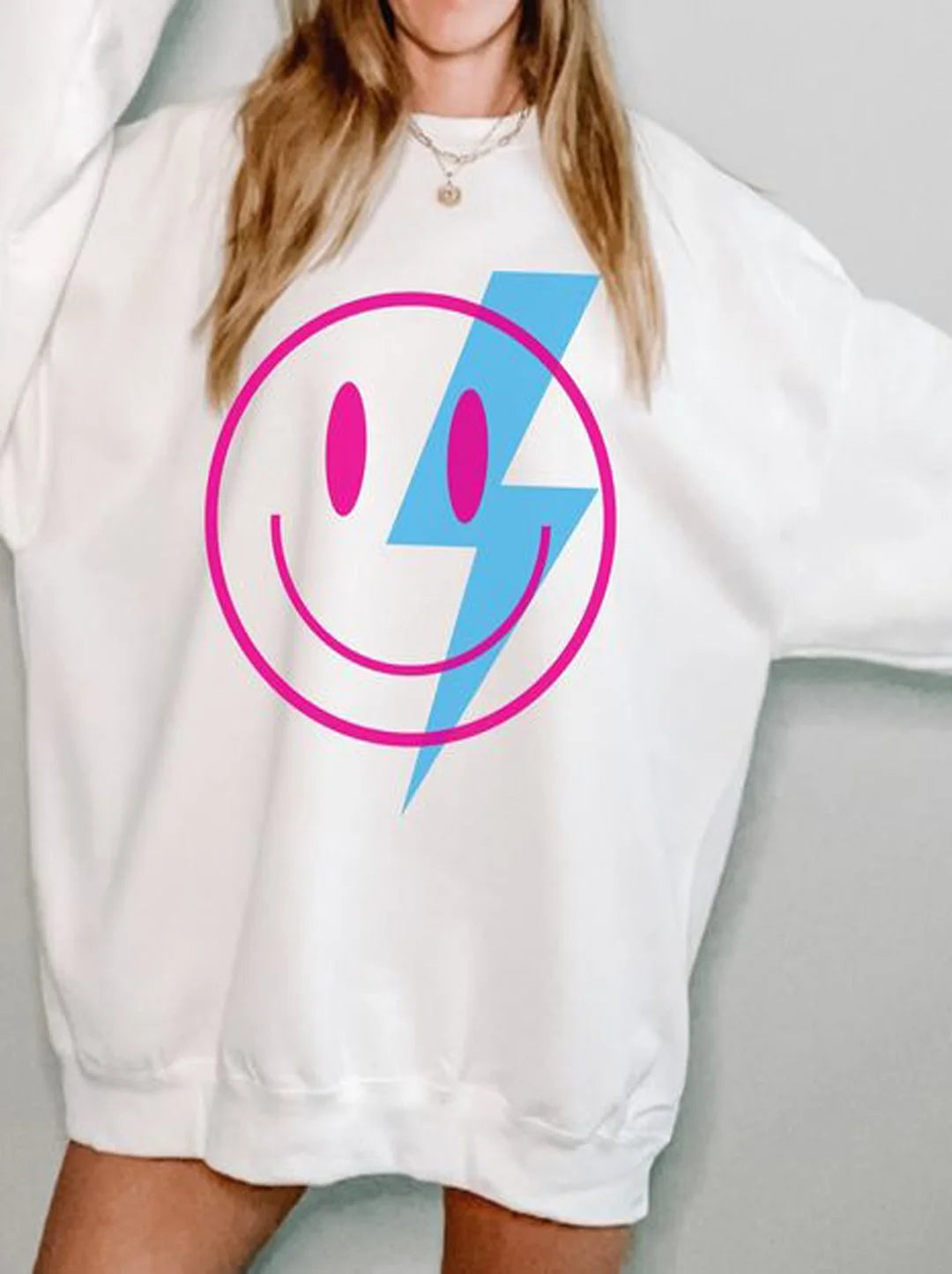 SXV 'smiley flash’ Printed Cool Aesthetic Drop Shoulder Oversized Baggy Sweatshirt