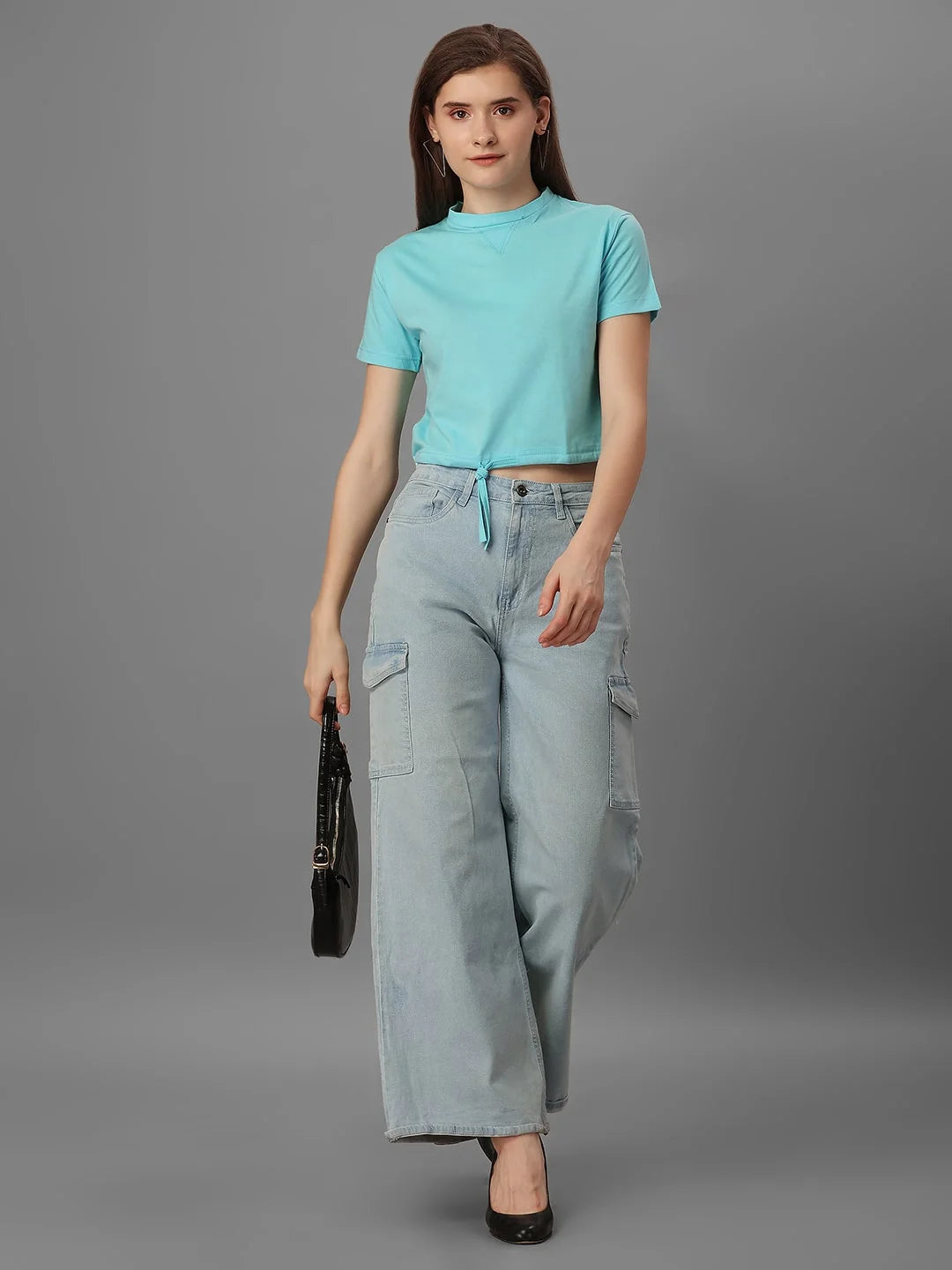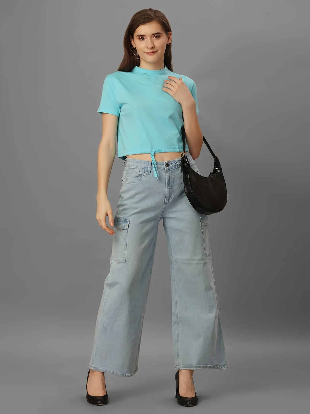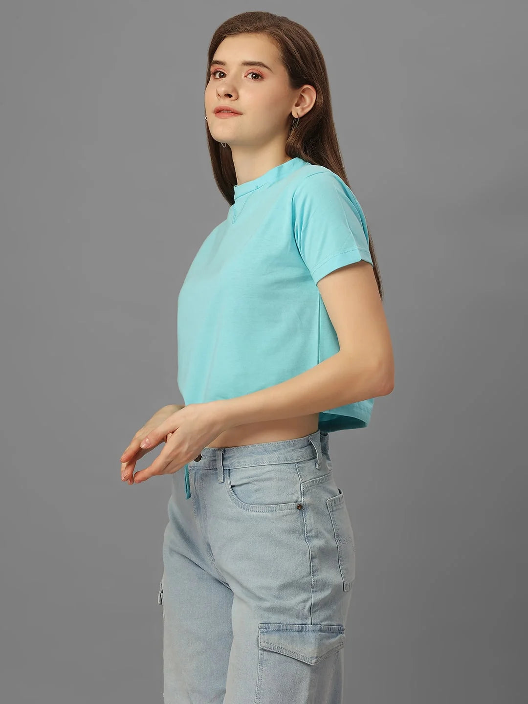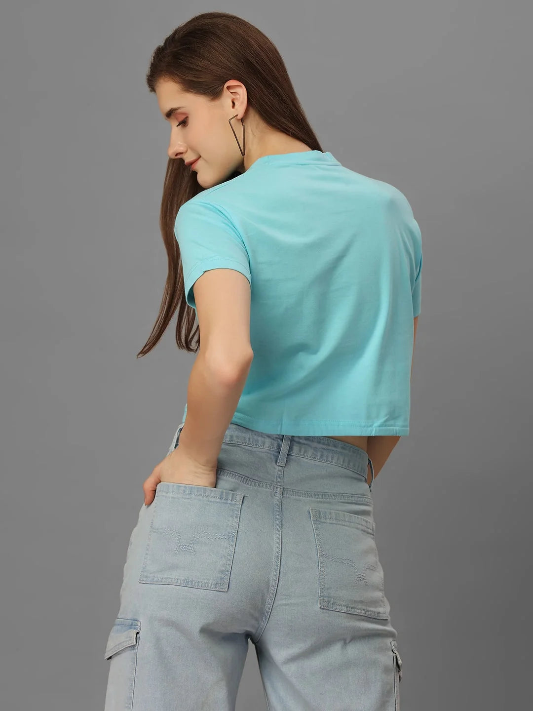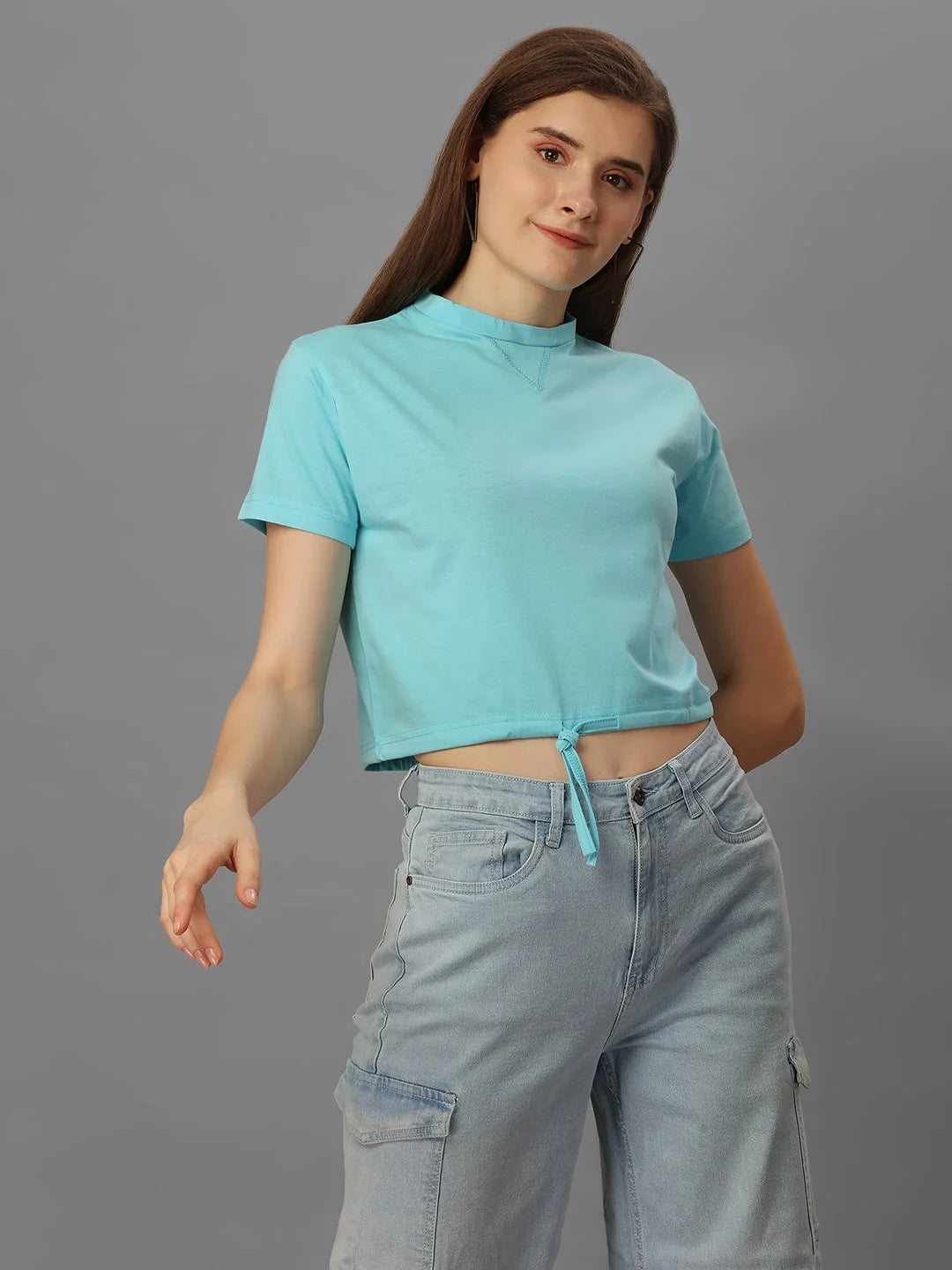 Quirky and playful, this top is made from stretchy cotton and features a fun aquablue color. With a high neckline and half sleeves, it's perfect for casual occasions. Made in India.