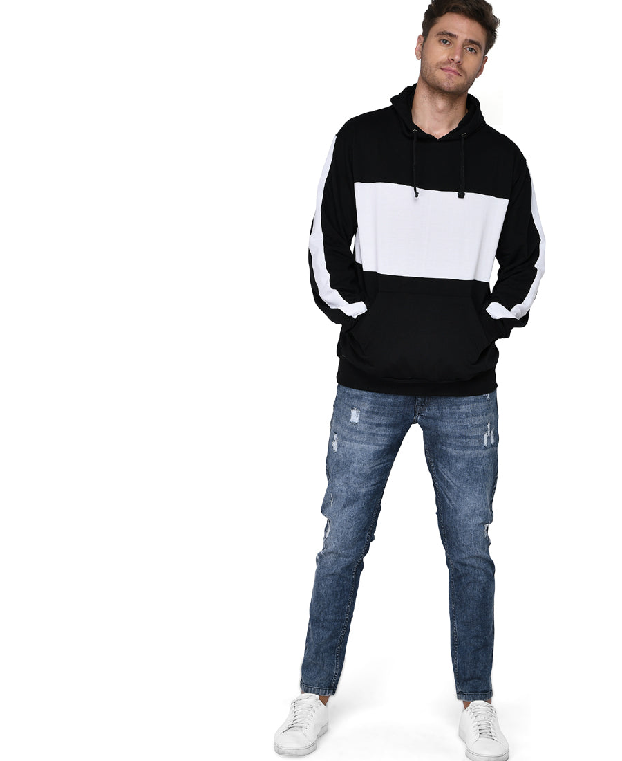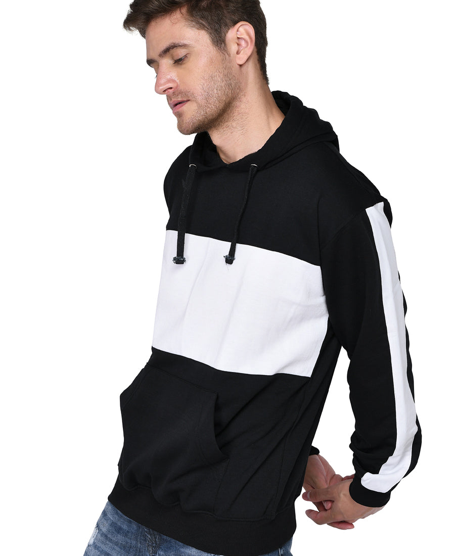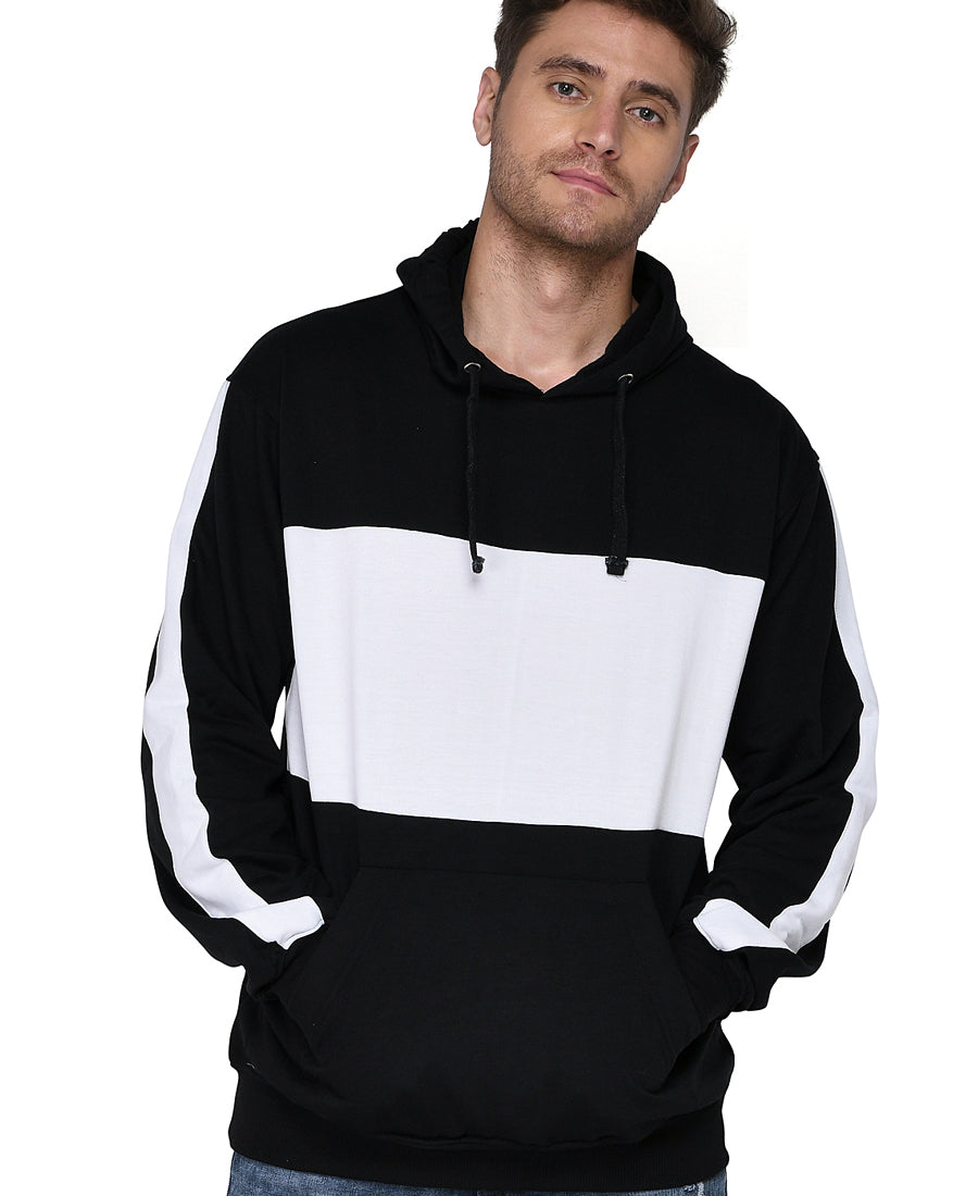 SXV Solid COLOURBLOCKED Striped Sweatshirt Hoodie for Men & Women (Black.White)