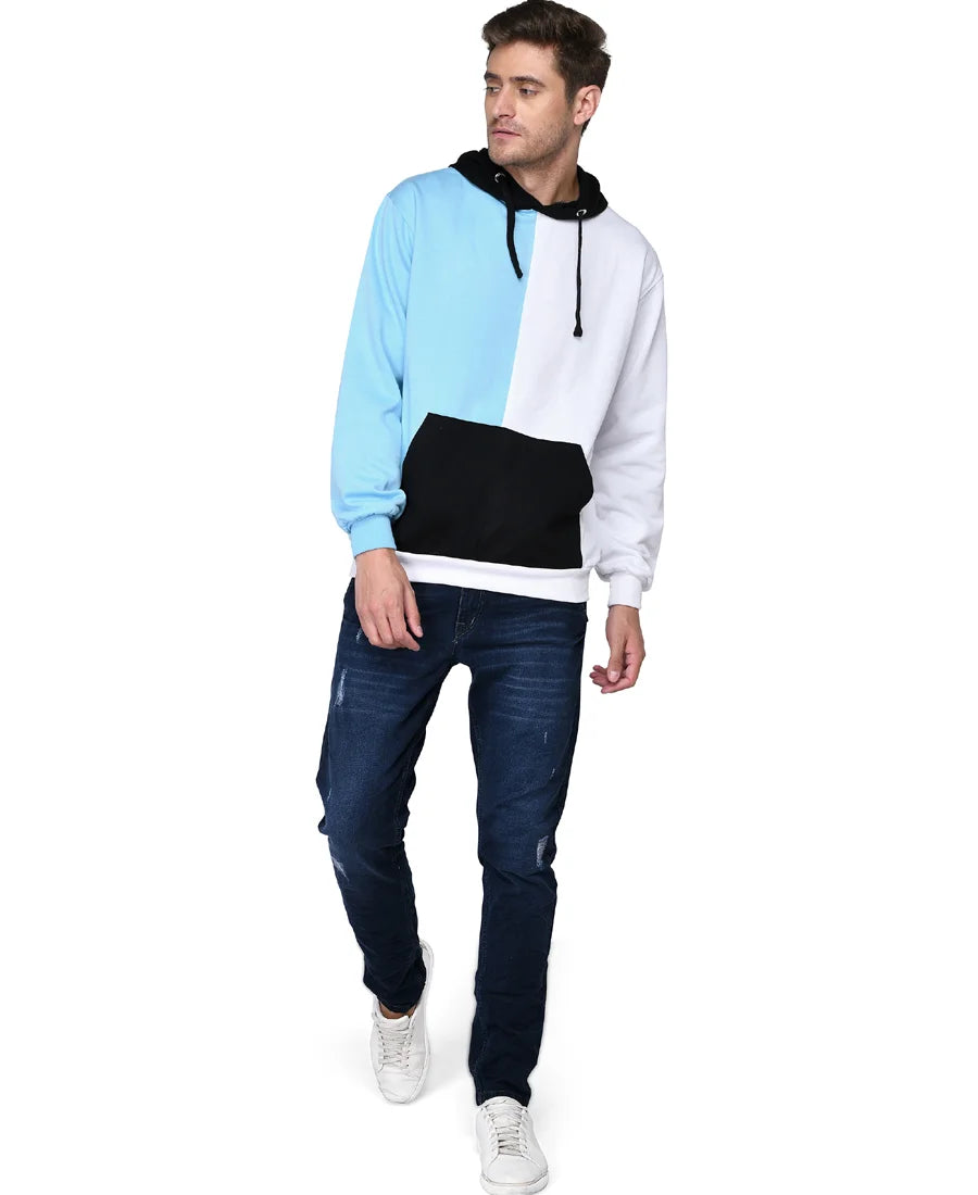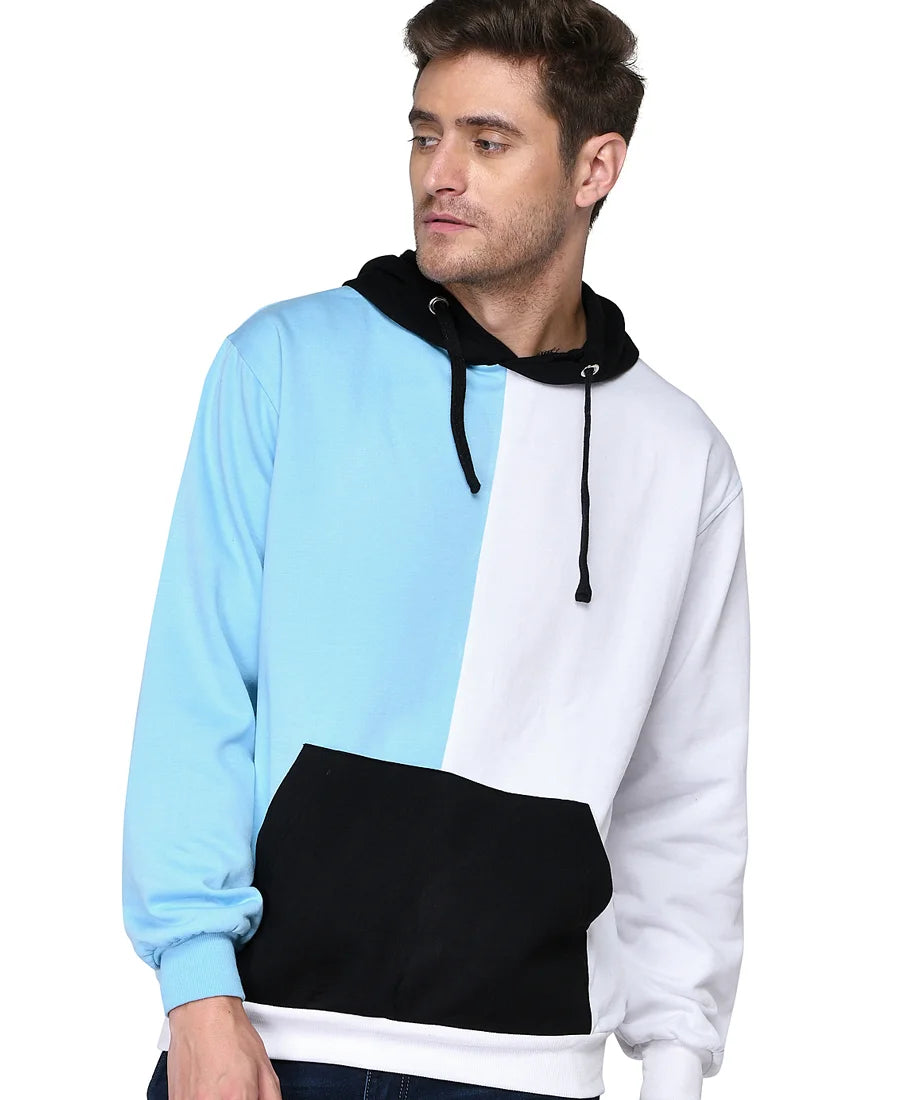 SXV Solid COLOURBLOCKED Sweatshirt Hoodie for Men & Women (AQUABLUE,Black.White)