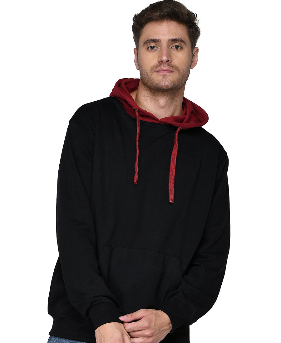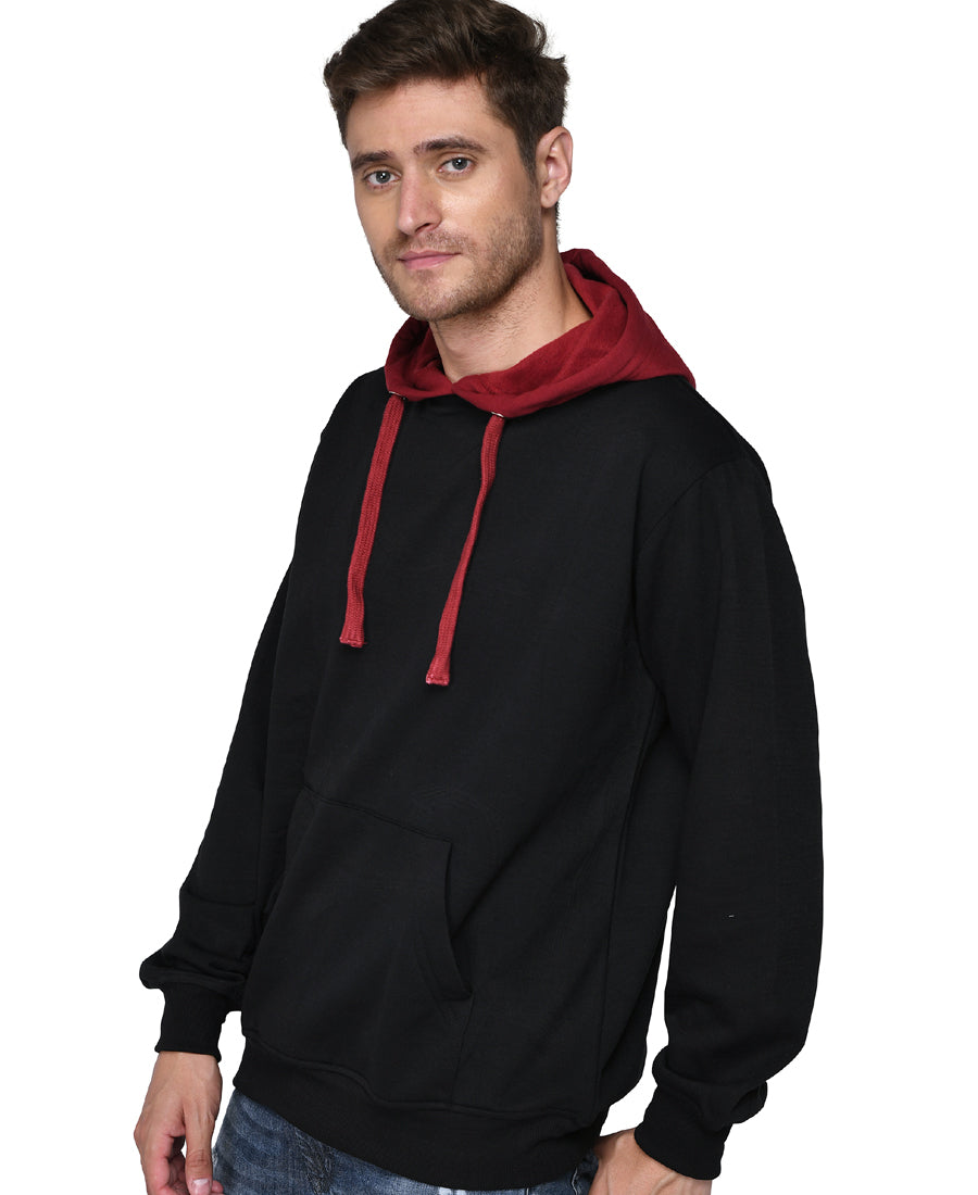 SXV Solid COLOURBLOCKED Sweatshirt Hoodie for Men & Women (Black&Maroon)