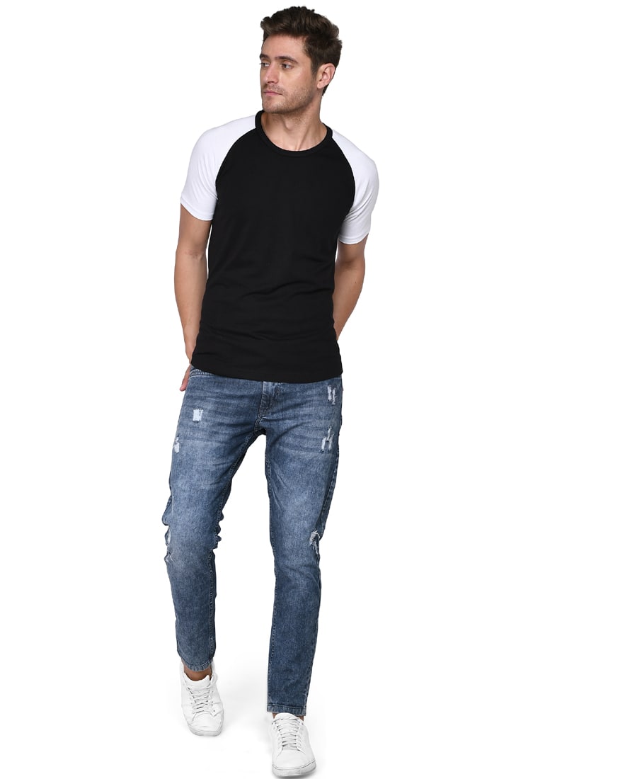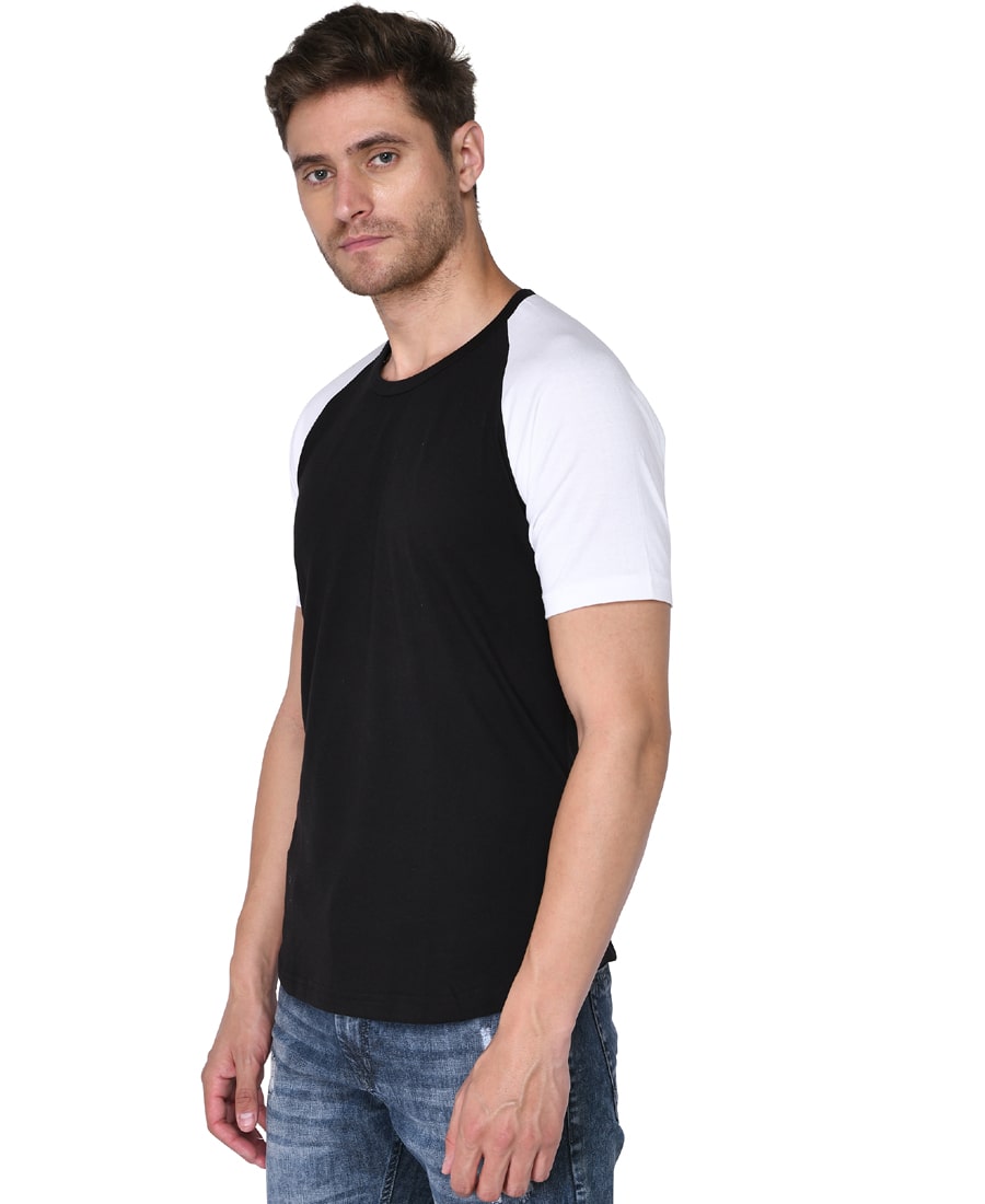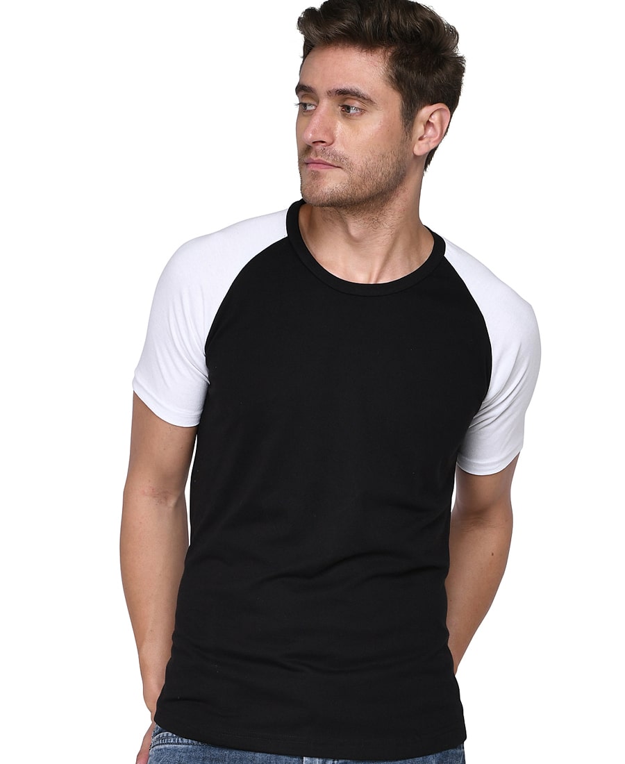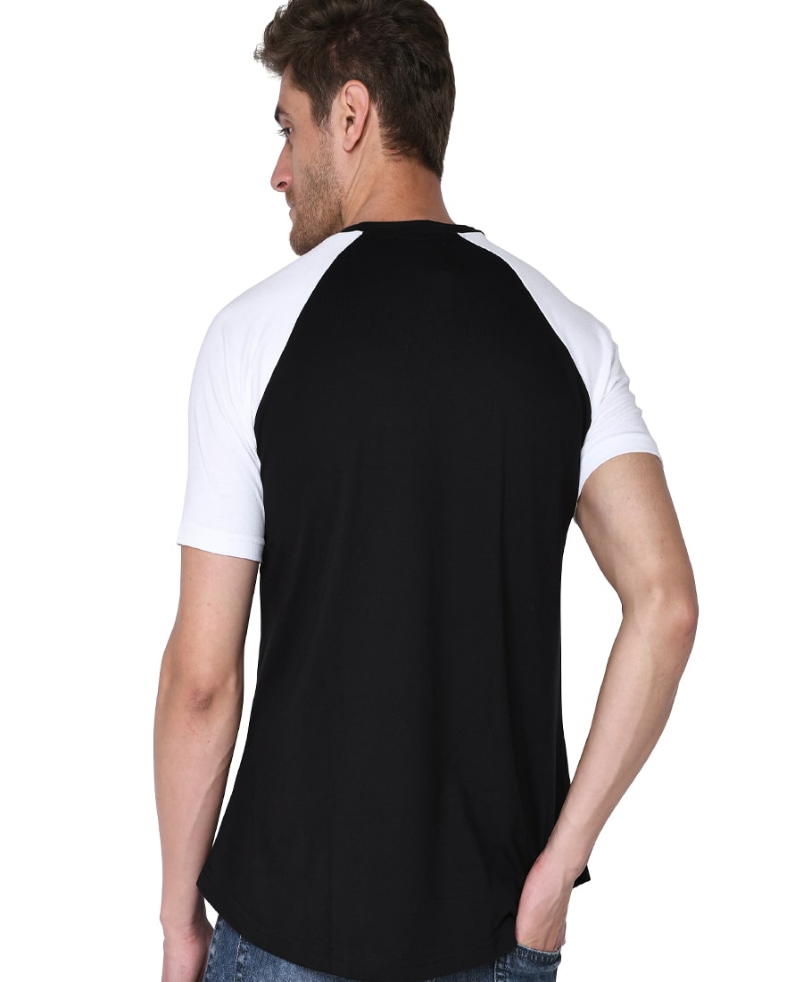 SXV Solid Dual Color Raglan Sleeve T-Shirt for Men (Black-White)